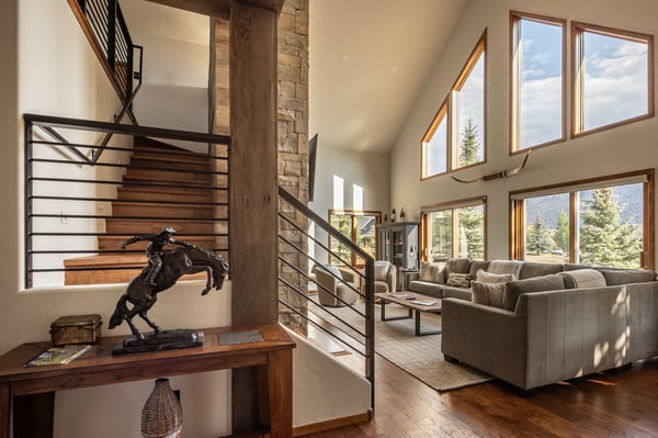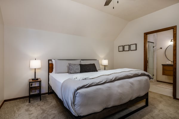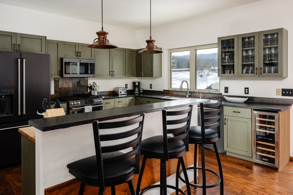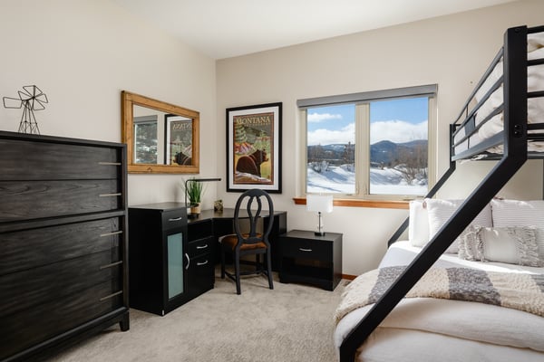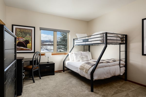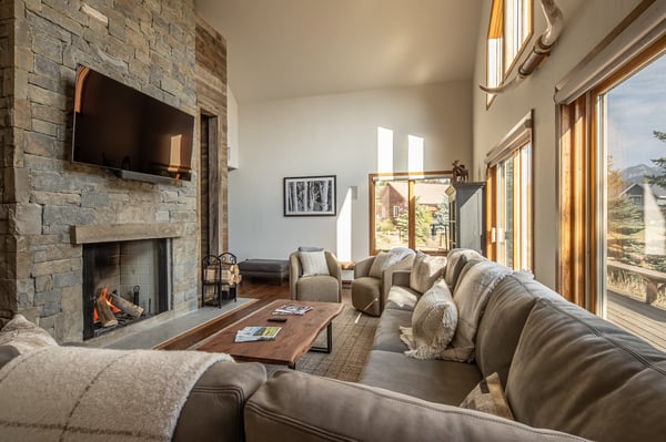 Ski Butlers offers you the best rental experience in the industry. No more lines. Ski Butlers is a full-service ski and snowboard company that delivers the equipment to you. Contact a villa specialist for more information. Southfork Retreat is an exquisite mountain home nestled in a quiet neighbourhood, close to some of the best biking, hiking, and walking trails. With a prime location just a short 3-minute drive from Town Center, or a quick 10-minute walk, this home is conveniently accessible to all the wonderful shops and restaurants nearby. Set on a large lot with beautiful views of the surrounding mountains, this home away from home features four bedrooms and an attached apartment above the double garage. So whether you're coming for the slopes at Big Sky Resort or are simply seeking some downtime under big blue skies, this home is the ideal choice for your stay in this magnificent corner of Montana. Southfork Retreat is a single-family home with enormous cozy-cabin character and spacious living quarters. As you enter the main level of this two-story mountain getaway, you'll enjoy the sun-filled living room with picturesque views that frame the natural beauty of Big Sky. With two love seats and an oversized armchair, this living room is the perfect place to gather together. Sit around the wood-burning fireplace on a cold winter day or snuggle up and watch television with friends and family for a relaxing night. The well-lit dining room flows seamlessly into the vibrant kitchen for an open-concept common area. With green and wood accents, the farmhouse-style kitchen will have you eager to make your first meal on the gas oven stove. Modern appliances and plenty of counter space make this kitchen a dream to host large gatherings. Enjoy breakfast on the eat-in island with four stools or play games on the large dining room table that seats eight guests. There is also a second family room in the loft space outside the fourth bedroom. This space includes a sectional sofa, two armchairs, a TV, and a desk with a computer monitor and printer available for guest use. Southfork Retreat offers a spacious 2-car garage, making it easy to get out and explore the surrounding area year-round. There are also 2 desks complete with computer monitors and HDMI cords, for those needing to plug in and work remotely. With four bedrooms in the main house and an additional bedroom in the above garage apartment, this luxurious home comfortably sleeps up to 12 guests.