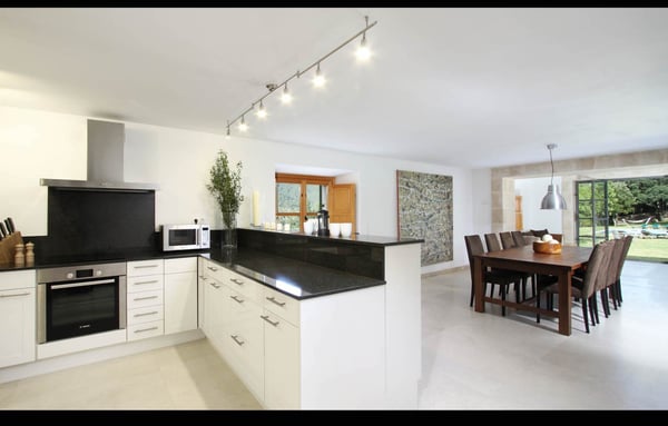 Nestled in the serene Vall de March, Casa Agoura is a stunning holiday villa that seamlessly blends modern comfort with timeless charm. With room for up to 8 guests, this 4-bedroom, 3-bathroom retreat offers breathtaking mountain views, a private pool, air conditioning, Wi-Fi, and even a table tennis area for added fun. Completely refurbished in 2009, this elegant country home is the perfect setting for a peaceful escape, just a 10-minute drive from the picturesque village of Pollensa. Situated on an expansive 27,000 m² plot, the villa enjoys complete privacy and tranquillity. Its slightly elevated position provides panoramic views of the surrounding mountains, while the lush, well-maintained garden, dotted with mature trees and verdant lawns, creates a serene atmosphere. A private driveway with ample parking ensures convenience for families or groups, and the villa’s idyllic location, just 6 km from Pollensa, offers easy access to charming local amenities and attractions. The villa’s four spacious bedrooms are thoughtfully designed for comfort and relaxation. Two of the rooms feature en suite bathrooms, adding an extra touch of convenience, while all bedrooms are equipped with air conditioning to ensure restful nights. Large windows and garden views create a peaceful ambience, making Casa Agoura a true sanctuary for up to eight guests. The interiors of the villa exude warmth and sophistication, with an open-plan living area featuring beamed ceilings and modern décor. This inviting space flows seamlessly into the garden, bringing the beauty of the outdoors inside. The centrepiece of the outdoor area is the elegant 12 x 4.8-meter swimming pool, surrounded by manicured lawns, mature trees, and soft evening lighting for a magical ambience. Guests can also enjoy a game of table tennis or simply unwind in one of the villa’s many tranquil corners. The villa’s luxurious kitchen is fully equipped for all your culinary needs, offering a spacious and functional area for meal preparation. The open-plan dining area and the villa’s alfresco dining spaces provide the perfect settings to enjoy meals with family and friends. Whether dining under the shaded pergola or in the open air surrounded by nature, every meal becomes a memorable experience. For a taste of local flavours, Pollensa village is just a short drive away, with its delightful restaurants, markets, and cafés. Casa Agoura is equipped with modern amenities to enhance your stay, including underfloor oil heating, air conditioning in all bedrooms, and an automatic sprinkler system that ensures the gardens remain lush and vibrant. Combining stylish interiors, breathtaking outdoor spaces, and convenient access to the vibrant Pollensa area, this villa offers an unparalleled retreat for those seeking both relaxation and adventure in the heart of Mallorca. License Number: ETV/9293