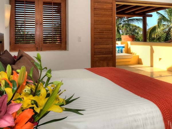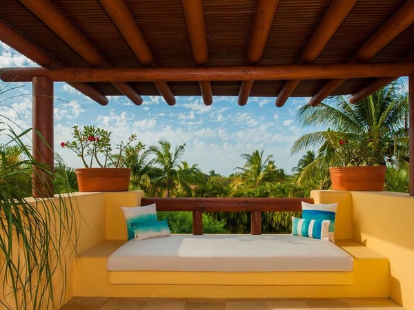 The Premier Sport Membership grants access to the tennis centre ($), the Residents' Beach Club and Kupuri Beach Club. One of the few split levels four-bedroom detached villas in Las Palmas, near the 4th fairway of the Jack Nicklaus Signature Pacifico Golf Course, where you can see the famous 'Tail of the Whale' island green, Casa Sabba embodies Punta Mita's open-air lifestyle. Guests are just a five-minute walk to the Pacifico Beach Club, which is only accessible by members and guests of Punta Mita. Casa Sabba is located in between the Four Seasons and the St Regis Resorts, two of the finest spots to enjoy lunch or dinner.