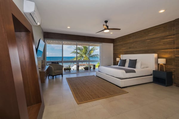 Villa Del Sol is an amazing beachfront retreat with all the amenities you desire for a relaxing vacation. With 4 spacious bedrooms and 4.5 bathrooms on two floors, it can accommodate couples, families, or groups of friends looking for privacy and luxury. The infinity pool with a view of the Caribbean and lounges right on the beach are perfect for those who want to soak up the sun and enjoy the powder-soft sand that stretches for miles in both directions. For those who want to explore the surrounding waters, the villa offers kayak and paddle board, as well as the opportunity to rent our 36′ Fjord boat at a discounted rate, complete with lunch and drinks. This makes it easy to explore the beautiful beaches and snorkeling spots that Cozumel is known for. In addition to the amazing location and amenities of the villa, Villa Del Sol boasts high-end furniture from all over the world, as well as locally-sourced pieces, giving the villa a unique and luxurious feel. Overall, the Villa Del Sol is the perfect place for those looking for a secluded and private retreat, or for families and friends who want to enjoy each other’s company in a beautiful and luxurious beachfront home.