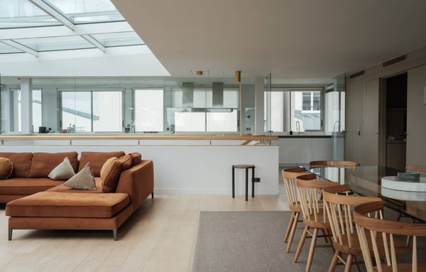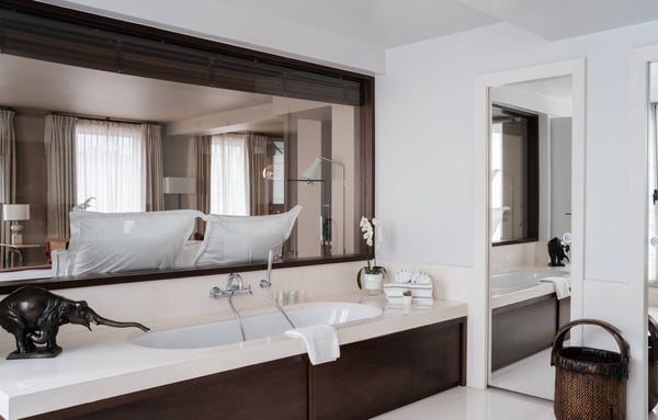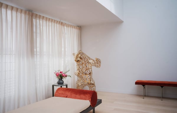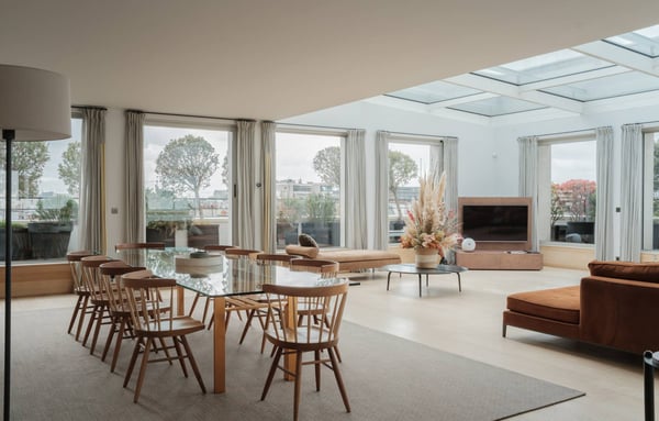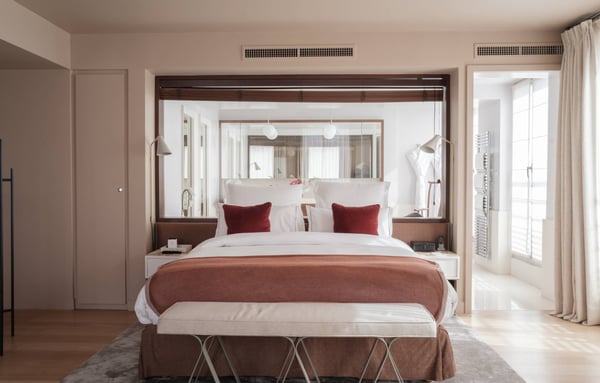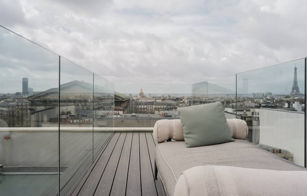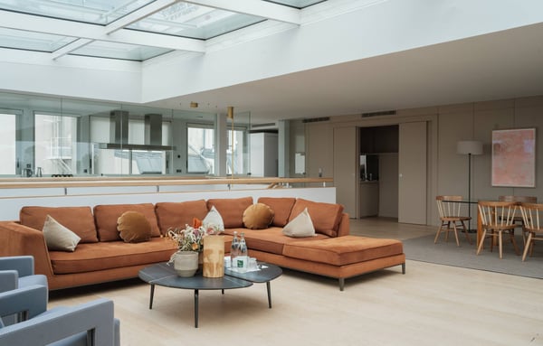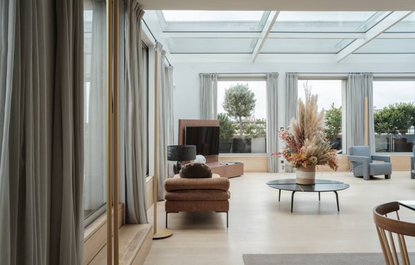 A hidden gem in the heart of Paris! Very confidential, luxurious, and unique, this is the perfect Paris accommodation for VIPs seeking exceptional service, security, and complete privacy in a mansion accustomed to welcoming Hollywood A-list, traveling with or without family, and needing privacy in the heart of Paris. On the sixth, seventh, and eighth floors, Augustin apartment is between luxury and relaxation. This 367m² triplex is sophisticated and displays a clever play of textures and orange tones, a marriage of stone and soft velvets. It features luxurious facilities with its 60m² bedroom with dressing room and ensuite bathroom, two guest bedrooms with their own bathroom, and a fully equipped kitchen with a view. And the cherry on the cake is the panoramic 92m² rooftop terrace, with a private garden! Please note that for larger groups, we can organise the rental of several apartments of the Mansion and privatise a whole floor.
