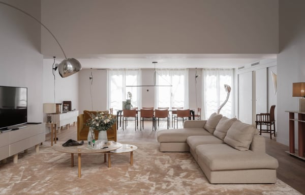 A hidden gem in the heart of Paris. Very confidential, luxurious and unique, this is the perfect Paris accommodation for VIPs seeking exceptional service, security and complete privacy in a mansion accustomed to welcoming Hollywood A-list, travelling with or without family, and needing privacy in the heart of Paris. Adeline loft apartment offers 345m² of space and exceptional facilities. Located over the first and second floors, it opens onto a private 86m2 garden with an outdoor lounge, which is almost impossible to find in Paris! Incredibly bright, the apartment has spectacular high ceilings. The warm decoration is inspired by the view of luxuriant nature, with earthy yellows, greens, brick red, sage, and charcoal, contemporary, elegant lines, and furniture. Enjoy a first-class stay at Aleline apartment, which offers a 41m2 primary bedroom with dressing room and ensuite bathroom, three bedrooms with two further bathrooms and a shower room, a lounge, a dining room and a fully-equipped kitchen. Please note that for larger groups, we can organize the rental of several apartments of the Mansion and privatize a whole floor.