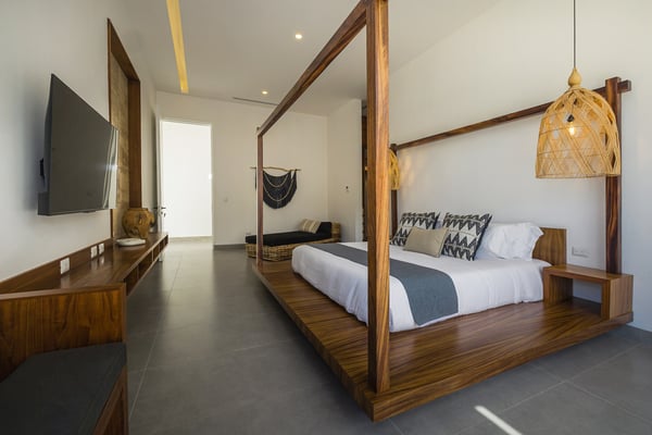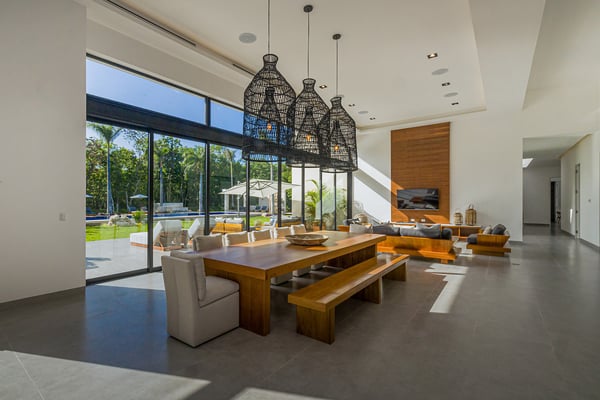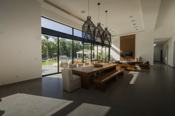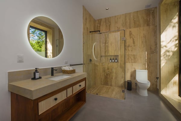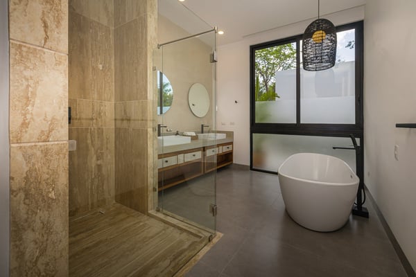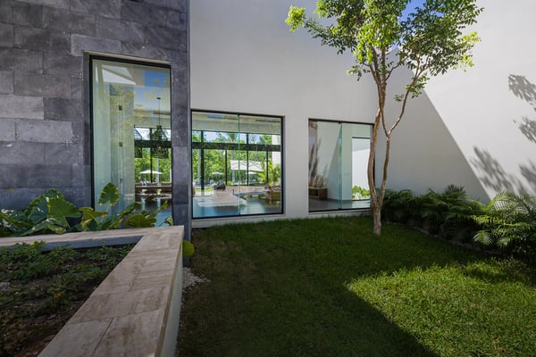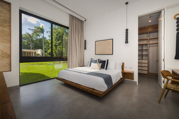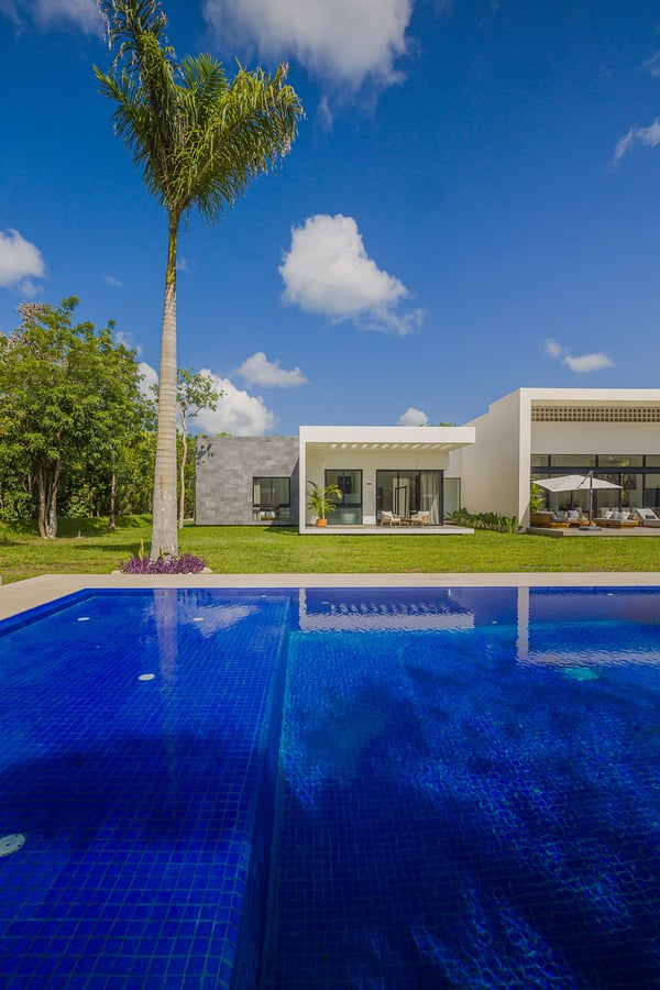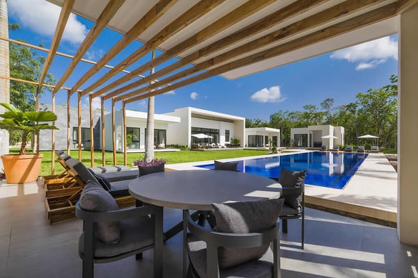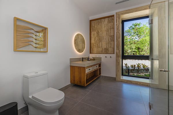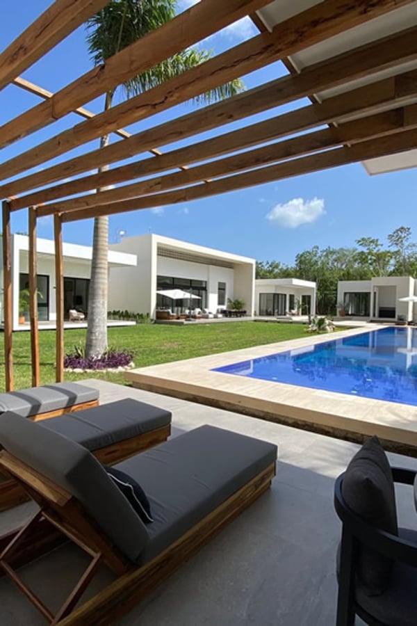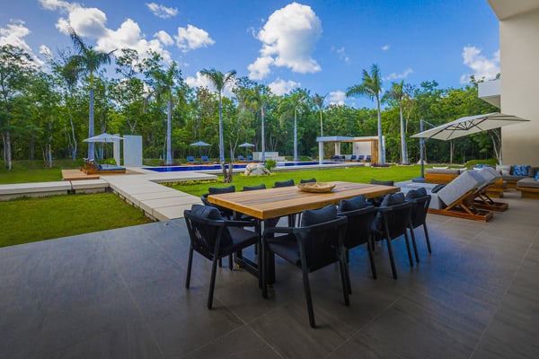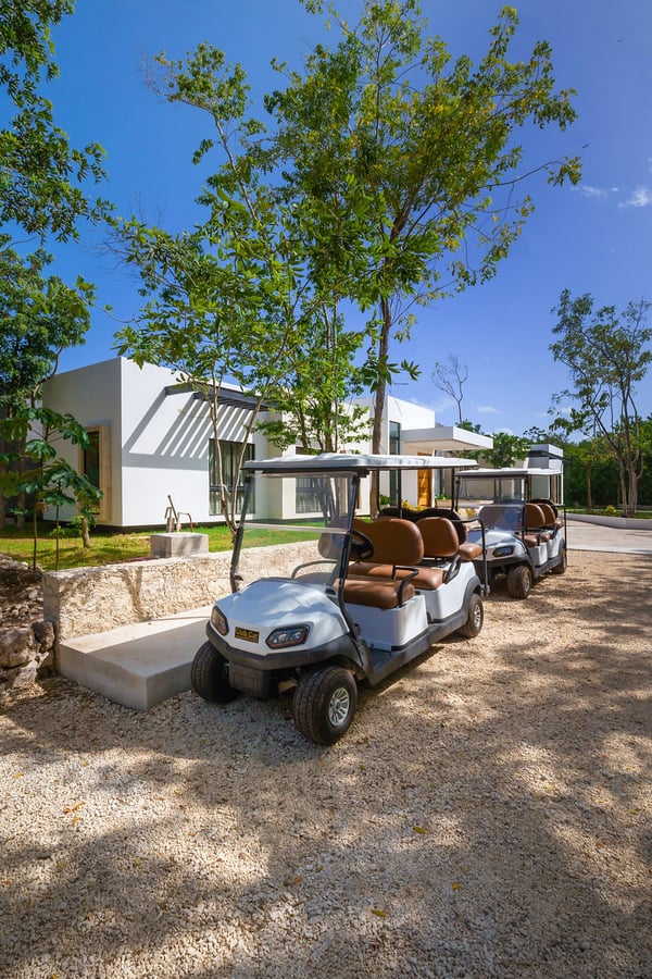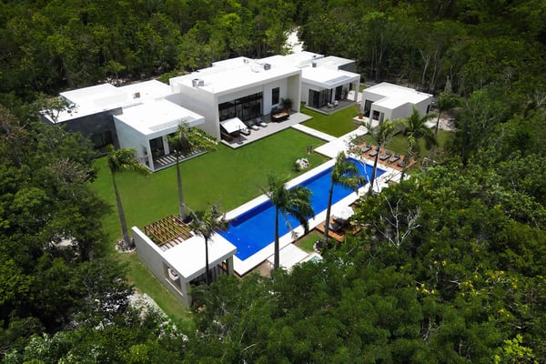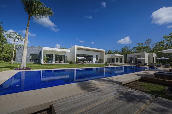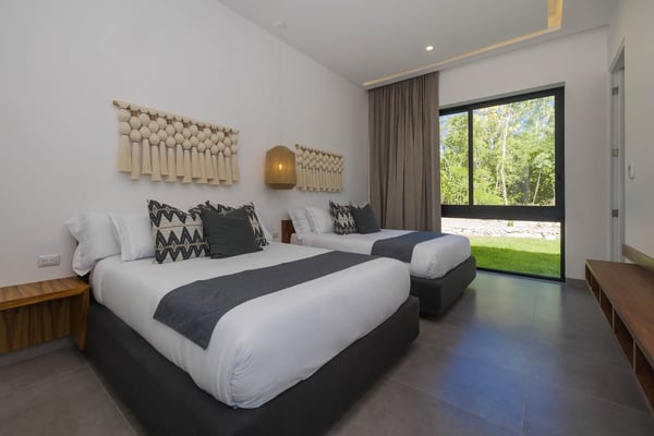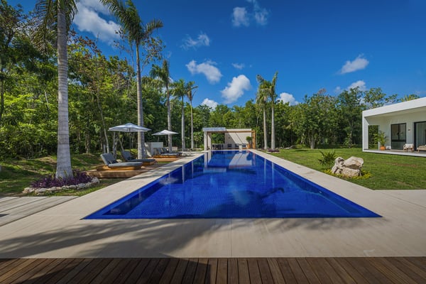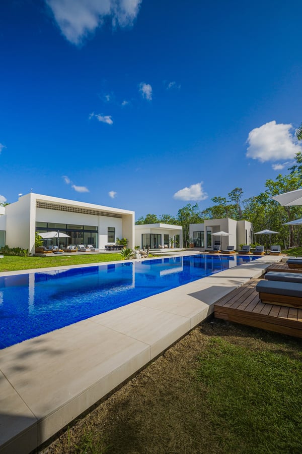 Welcome to L’and, a breathtaking seven-bedroom, 7.5-bathroom luxury villa retreat located on five acres of lush forest in Cozumel, Mexico. This exquisite property offers an unparalleled experience, with a stunning 22-meter pool, a well-equipped gym, and easy access to sandy beaches just 300 yards away via our golf carts or bikes. The villa’s interior is a masterpiece of design, boasting 5-meter high ceilings and luxury furniture from all over the world. The spacious living areas are perfect for relaxing or entertaining, with ample seating and large windows that provide panoramic views of the surrounding forest. The gourmet kitchen is a culinary haven, featuring top-of-the-line appliances, a large island with seating, and all the amenities needed to create gourmet meals. The formal dining area is an elegant space for enjoying meals with family and friends, and the outdoor terrace provides a picturesque setting for alfresco dining. L’and offers seven beautifully appointed bedrooms, each with its own en-suite bathroom for ultimate comfort and privacy. The primary suite is a true retreat, with a king-size bed, sitting area, and private terrace overlooking the forest. The en-suite bathroom features a soaking tub, walk-in shower, and double vanities with modern fixtures. One of the highlights of L’and is the magnificent 22-meter pool, perfect for swimming laps or lounging by the water’s edge. The outdoor terrace is furnished with comfortable loungers, providing a serene setting for sunbathing, sipping cocktails, or stargazing in the evening. The villa also features a well-equipped gym, allowing guests to maintain their fitness routine during their stay. For those who love nature, L’and is surrounded by a lush forest, offering unparalleled privacy and tranquility. The sandy beaches are just 300 yards away and can be easily accessed using the golf carts provided by the villa. Beach chairs are also provided, allowing guests to relax and enjoy the sun and sea in comfort. Additionally, bikes are available for those who wish to explore the surrounding area. L’and is not only a perfect retreat for relaxation and privacy, but also an ideal venue for special events such as weddings and ceremonies. The villa’s stunning setting amidst the forest provides a unique and picturesque backdrop for memorable celebrations. In summary, L’and is a luxury villa retreat like no other in Cozumel, offering unparalleled privacy, breathtaking surroundings, and world-class amenities. Whether you’re seeking a peaceful retreat, planning a special event, or simply looking for a luxurious getaway, L’and is the perfect choice for an unforgettable experience.