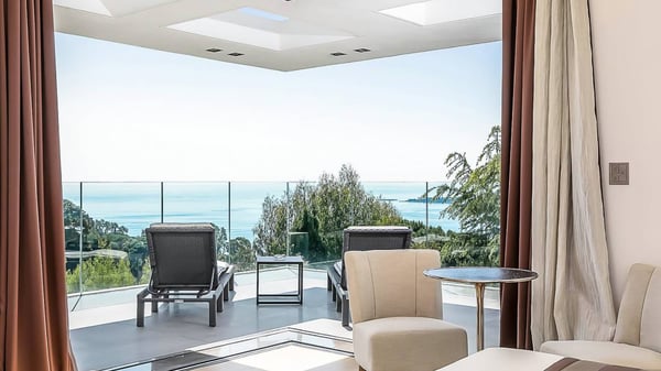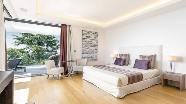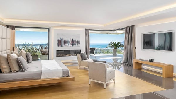 Located in the prestigious Californie Quarter of Cannes, this stunning eight-bedroom villa is one of the most breathtaking properties on the French Riviera. Set amongst expansive grounds, the 1400m² estate offers unparalleled views of the Bay, Iles de Lerins, and the majestic Esterel mountains that grace the city's backdrop. Impeccably designed and adorned with exquisite furnishings and top-of-the-line homeware, this opulent Villa leaves no luxury unspared. Its thoughtful amenities ensure every comfort is at your fingertips. The full-length glass doors seamlessly blend the interior and exterior living areas, granting guests sweeping vistas of the azure Mediterranean and the rugged Esterel landscape on all three floors. Embracing a style reminiscent of a 5-star hotel, each of the Villa's eight bedrooms, complete with ensuite bathrooms, serves as a sumptuous retreat for relaxation and unwinding throughout your stay. For those seeking ultimate indulgence, the property features two magnificent swimming pools, a private Spa, and a fitness area. Additionally, multiple sun-drenched outdoor lounge and dining areas await, beckoning you to create unforgettable memories during your stay in this splendid villa situated in the heart of Cannes.