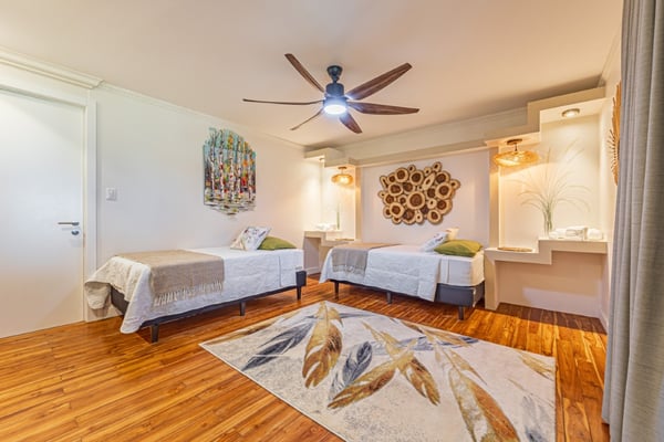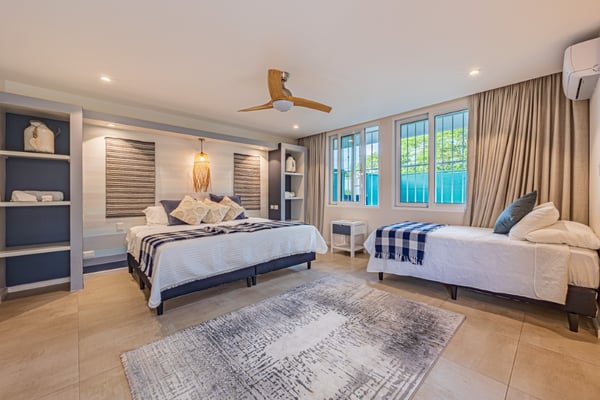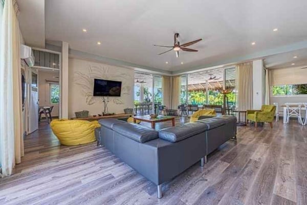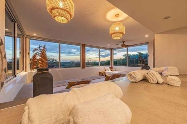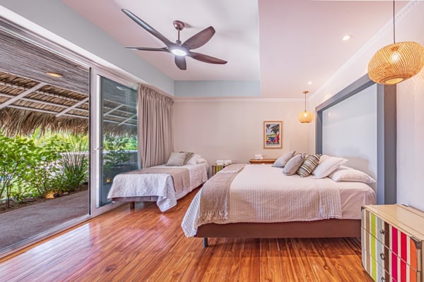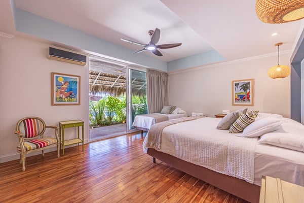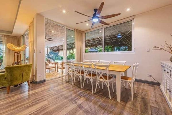 Discover the magic of Casa Las Colinas, an extraordinary villa perched high on a mountain, immersed in a lush tropical forest that blends with breathtaking ocean views and the majestic Las Baulas National Park. Dive into refreshing moments in our pool and experience complete rest in our meticulously decorated rooms, where comfort and luxury intertwine in a welcoming embrace. In the main house, you'll find six bedrooms, one of which has exterior access via a staircase, providing you with privacy and comfort. We also have an independent guest house for two people with a private bathroom. All our rooms are equipped with fans and air conditioning so you can enjoy a cool and comfortable stay at any time of the year.