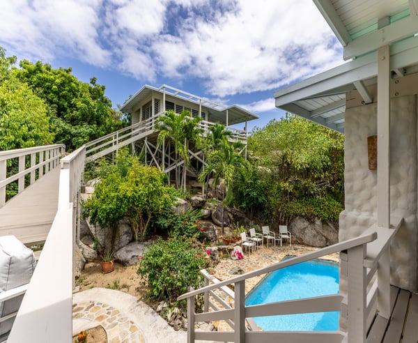 The new Turnstone Villa is a one-of-a-kind island sanctuary nestled among lush tropical vegetation and Virgin Gorda’s iconic granite boulders. Set on over an acre of land, this villa offers an unparalleled sense of peace and privacy. From its spacious deck, enjoy a refreshing rum punch while taking in sweeping views of the Caribbean Sea and the verdant islands dotting its turquoise horizon. Just steps away—less than 100 feet—you’ll find the unspoiled beauty of Little Trunk Bay, where crystal-clear waters invite you to snorkel, swim, or simply relax on the beach. This boulder-strewn area is a unique geological feature of Virgin Gorda, and it’s complemented by nearby national parks. The Crawl and Spring Bay beaches are a five-minute walk, while the famous Baths and Devil's Bay National Park are just a ten-minute stroll away.