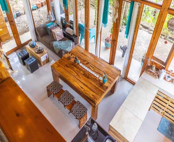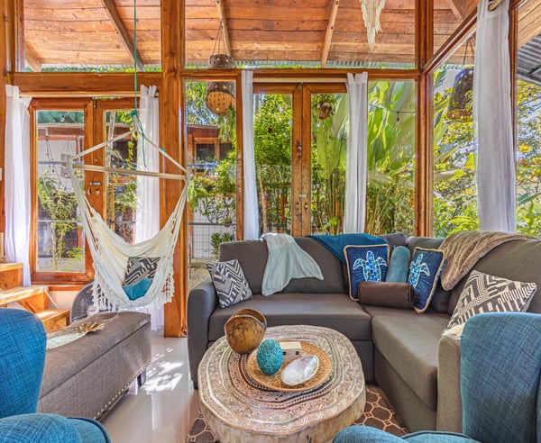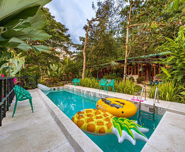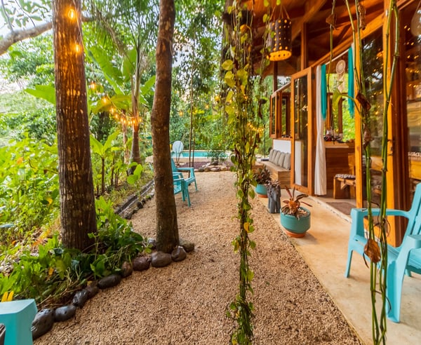 Welcome to Villa Wanderlust: A Paradise for Retreats, Weddings, Family Gatherings, and more Escape into the magic of three bohemian-style villas, featuring two pools, a luxurious jacuzzi spa, a professional teak wood yoga shala and event space, a cozy fire pit, breathtaking mountain views, and enchanting garden landscapes. This serene haven is perfect for experiencing nature in harmony with comfort and a captivating ambiance. Ideal for retreats, weddings, family reunions, and special celebrations, Villa Wanderlust accommodates up to 35 guests with 21 beds. Surrounded by vibrant jungle wildlife—including monkeys, macaws, and toucans in their natural habitat—this space is a true sanctuary. The beach is just one mile away, offering the best of surf, sun, yoga, events, and relaxation. Located only five minutes from town, Wanderlust Villas strikes the perfect balance between seclusion and convenience. Step into a magical, multifunctional space that welcomes you with warmth and wonder.
