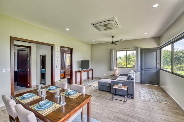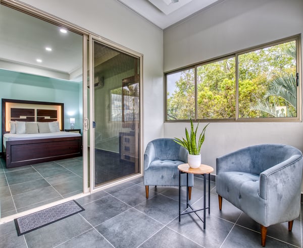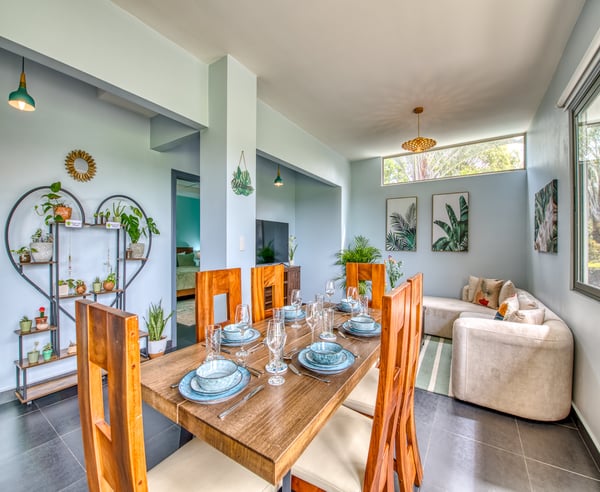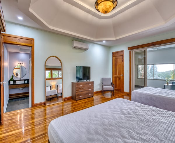 Planning a trip for a big group is about more than just finding a place to stay. Whether it is a family reunion, a wellness retreat, a wedding celebration, or a getaway with friends who truly enjoy spending time together, you deserve a destination that exceeds every expectation. One that feels grand yet welcoming. Spacious yet intimate. Thoughtfully designed so every moment from sunrise yoga to late-night laughter flows effortlessly. Castillo Colonial is that rare find. Just minutes from Nosara’s vibrant town and beaches, this elegant estate is spacious without feeling formal and perfectly equipped to make group travel seamless. Whether you are rolling out yoga mats, herding toddlers, or coordinating a chef-prepared dinner, everything here is set up to make your time together easy, comfortable, and unforgettable. There are 15 bedrooms split across 4 villas, with 7 separate units so everyone gets a bit of privacy and a good night’s sleep. You’ve got two private pools, wide shaded terraces, breezy open spaces, and a huge grassy lawn where kids can play, adults can unwind, and celebrations unfold naturally. It’s just five minutes from the beach and town, but it feels like a peaceful little world all your own.