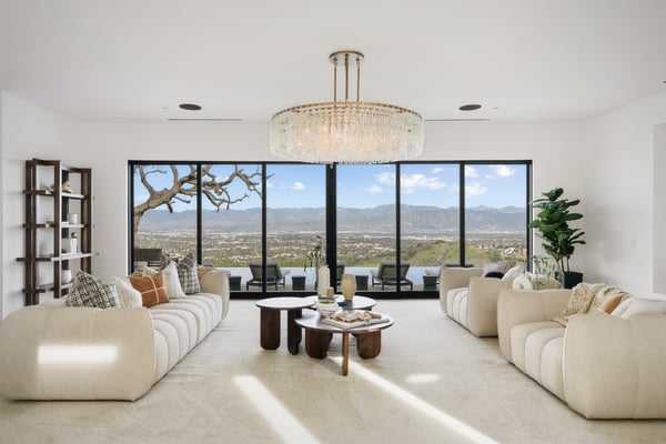An unparalleled retreat offering uncompromising privacy along Mulholland Drive, you are transported into a one-of-a-kind, gated compound with breathtaking 220-degree views, ensuring seclusion, splendour, and exclusivity. Spanning nearly 7,000 sq ft, this home features 6 bedrooms, 6 bathrooms, and timeless sophistication. Upon arrival at the gated motor court, a striking waterfall greets you, accompanied by a double and single garage and additional parking for 5-6 vehicles. Entering through a dramatic pivot door, every room opens into expansive views.