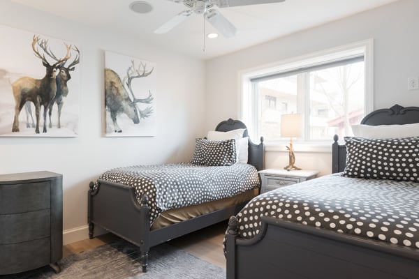 We really enjoyed staying in this house---very pretty, clean and well-equipped, and also very close to Main Street. We were able to walk to the town ski lift pretty easily but it's a slow lift so we took the shuttle and also ubered as well to get there faster. It's hard to tell from the photos that the house is tall and narrow--3 levels and the top floor is the LR, kitchen and dining area along with the 3rd bedroom that leads to the outdoor hot tub. The bedroom with the two single beds is quite a bit smaller than the others with less light, etc. but has a full bath en suite like the other two bedrooms.