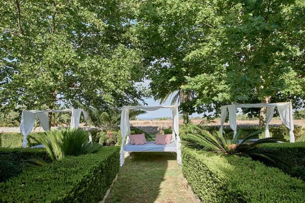 Just seven kilometers from the beach, surrounded by lush orchard gardens, is Cornelia, a restored 17th century farmhouse. The property rests on a working farm estate (247 acres) with olive and orange groves, a rich variety of Mediterranean flowers, and even a horse-riding facility. The spacious villa, offering views of Mt. Etna, provides tranquility and privacy with a central courtyard. Cornelia provides a truly elegant and relaxing retreat with its many archways, vibrant interiors, fireplaces and fountains. CIN: IT089001B9NRGEHA8O