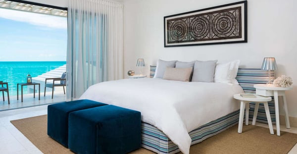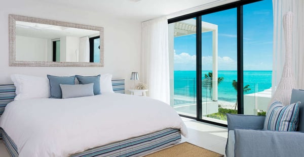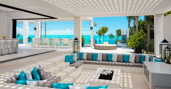 Nearby construction may result in noise disturbances. For further details on how this might affect your stay, please reach out to a Rental Escapes villa specialist. Construction is expected to last until January 2027. Tucked behind the pristine sand dunes of Long Bay Beach, Triton Luxury Villa sets a new benchmark for luxury in Turks & Caicos. Spanning over 7 acres of lush landscape, the estate offers 18,000 square feet of opulent beachfront living space. The villa features a total of 15 bedrooms, including an 8-bedroom main house, 4 standalone bungalows, and 3-bedroom staff quarters. Additionally, the villa now boasts a state-of-the-art sports center, complete with the only red clay tennis court and the only two padel courts in Turks and Caicos, as well as a pickleball court, offering guests top-tier facilities for fitness and recreation. The property features an outdoor movie theatre with fire pit, hot tub, 2 pools, cold plunge, sports center featuring private hard and clay tennis courts, pickleball and bocce ball courts, villa butler, chef, housekeeping and one of the nicest beachfronts on Long Bay. With endless unobstructed views of the world-famous turquoise waters of the Turks and Caicos Islands. Triton Luxury Villa sits on one of the world’s top beaches for kiteboarding. Known for its safe learning environment and ideal conditions, Long Bay Beach is an ideal location to learn kiteboarding. The majority of the kiteboarding takes place about 1 mile down the beach from Triton Villa. Named for the Greek god who was the messenger of the sea, Triton Villa is a private haven fit for an Olympian. Not only does this contemporary Turks and Caicos vacation rental boast a breathtaking setting on the white sands and turquoise waters of Long Bay Beach, but its bright, open living spaces enchant with their relaxed modern style.