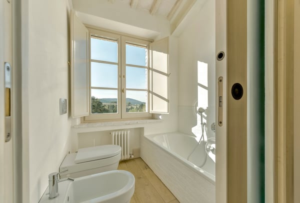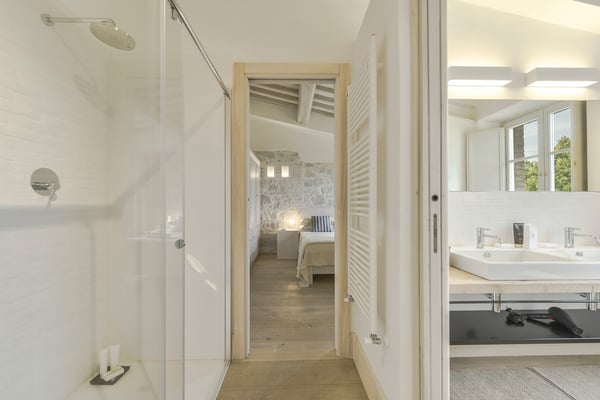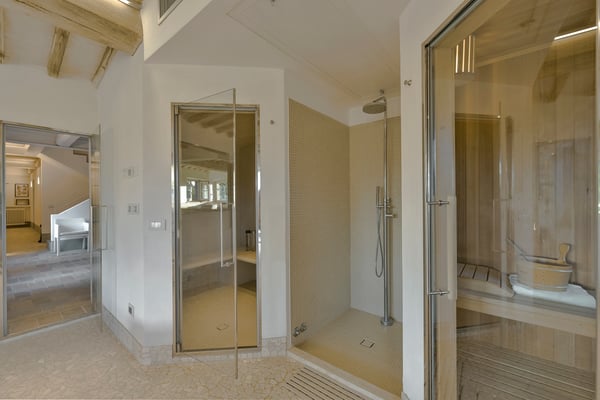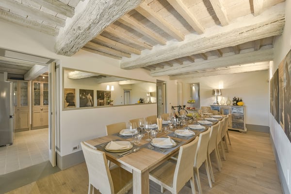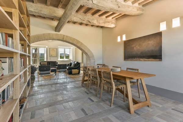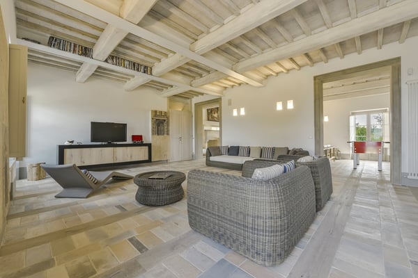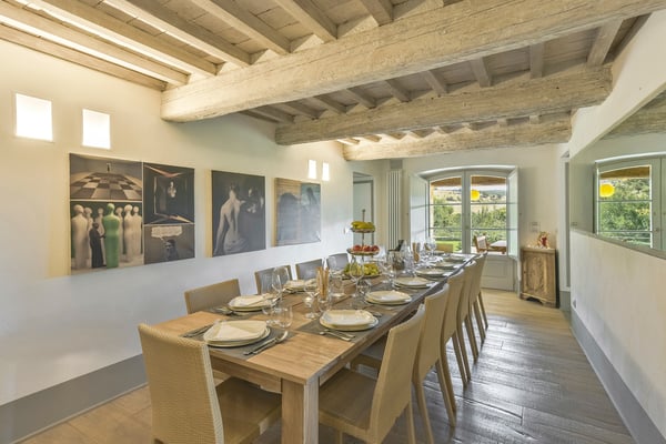 This two-level luxury villa is one of the most unique and stunning homes in this area. Set atop a hill, this elegant contemporary property dominates the surroundings and offers dramatic panoramas of the rolling Tuscan Hills. An exquisite selection of custom-made furniture and extraordinary artisanal finishing are evident throughout the house, from the ample airy social rooms to each of the bright seven bedrooms; an impressive list of luxurious amenities make this villa a superb choice for first-class vacation retreats. The recent meticulous restoration brought this property back to its authentic character with an eye on modern sophistication through high-quality materials, attentive detailing, and a soothing colour palette. The custom-built private wellness area includes an indoor swimming pool with a counter-current swimming system, a steam room, a sauna, a shower, and a fully equipped gym. These features make the villa an ideal retreat also in the colder months.
