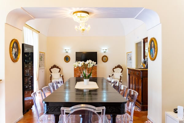 Nestled in the cliffs of Positano, the traditionally designed Villa Merope is perfect for a group of friends or a large family who wants to spend time on the glitzy Amalfi Coast. The three-floor villa offers all of the comforts of a retreat as well as the functionality of a private home. The traditional decor features local artwork, beautiful Vietri ceramic floors, and heirloom antiques. Merope is also an ideal property for guests with limited mobility, who can finally expect a comfortable stay on the Amalfi Coast thanks to the villa's easy access from the main road, private parking on the premises for up to four family-size cars, and elevator that leads from the garage directly to each floor of the villa. This easy access is a rare asset among the local villas and therefore a big plus in our book! Make your villa vacation dream a reality and rent Villa Merope, where you will have the lively Positano at your feet. CIN: IT065100B4GFHURCN2