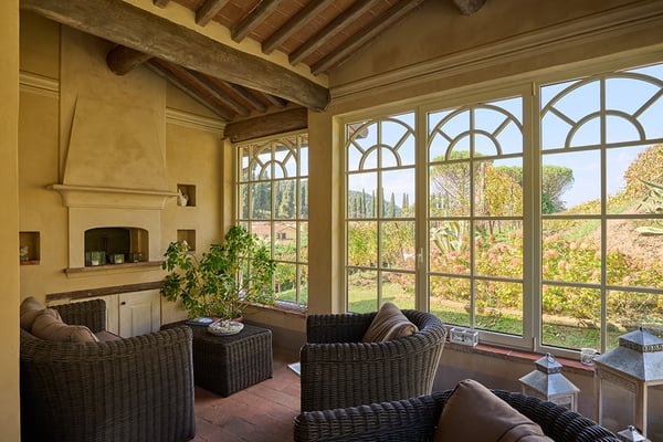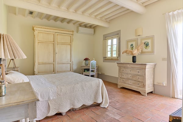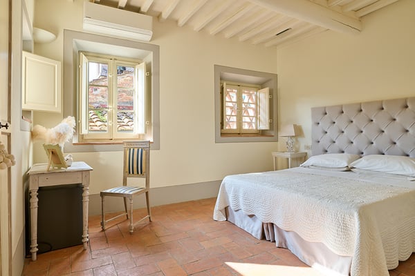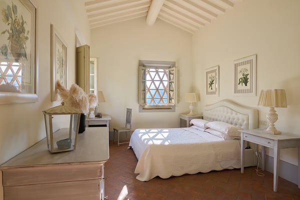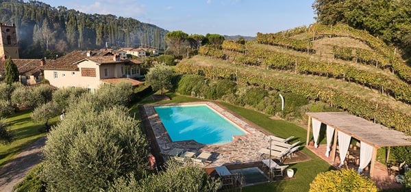 Located 30 minute drive from Lucca, on the top of the Tuscan hills, Villa Rica is a traditional charming farmhouse that has been skillfully renovated and converted into a country home to offer comfortable hospitality and a relaxing stay, in an atmosphere of quietness and intimacy. The house offers beautiful views of the surrounding valleys and the Tyrrhenian sea, including the near islands of the Tuscan Archipelago. The house is positioned in a quaint village and near an old church whose bells can be heard chiming hourly adding to the Old World country charm.