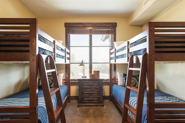 We apologize for any noise pollution which may occur due to local construction projects near this unit. Rental Escapes has partnered with Ski Butlers to offer you the best rental experience in the industry. No more lines. Ski Butlers is a full-service ski and snowboard company that delivers the equipment to you. Contact a villa specialist for more information. Nestled near the Silver Star Ski Lift with ski-in/ski-out access, Silver Star 1305 is a four-bedroom, four and a half-bathroom Park City condo that sleeps 10. Enjoy windswept days skiing, hiking, or biking, followed by lively nights exploring Main Street—only 5 minutes away. Community amenities include an outdoor pool, hot tub, fitness center, and on-site cafe. Guests will love returning from a day of mountain fun to relax by the gas fireplace or in the inviting private hot tub. Enter this welcoming condo on the second floor. Cubbies at the entrance provide a convenient place to drop boots and outerwear. This level features a cozy armchair—perfect for a quiet night of reading—and a guest bedroom with a king bed. All the condo’s bedrooms have a TV and a private bathroom. Head down the open stairwell to find a spacious living space beneath a soaring two-story ceiling and a large picture window offering a sweeping view of the mountain peaks and evergreens decorating the horizon. Relax on the two soft sofas and twin leather armchairs for an evening of conversation and cocktails by the firelight. In the dining area, retro-inspired artwork adds color above the eight-seat table. Dig into a fueling meal cooked in the beautifully appointed kitchen boasting Viking appliances and a four-stool breakfast bar overlooking the living area. On the balcony, indulge in a blissful soak in the private hot tub or a nightcap in the crisp mountain air. When ready to retire, choose from a primary or guest bedroom on this floor—both have king beds. The charming bunk room with two twin-over-twin beds offers comfortable accommodations for kids, teens, or adults who don’t mind sharing space. Experience an exciting and convenient Park City getaway at Silver Star 1305. An underground parking space for 1 vehicle makes it easy to explore regardless of the season. Guests can also take advantage of the Silver Star Shuttle service in the Winter. For ski-in/ski-out access, exit the home and take the elevator to the fourth floor. The Silver Star Ski Lift and ticket booth are in the Silver Star Plaza.