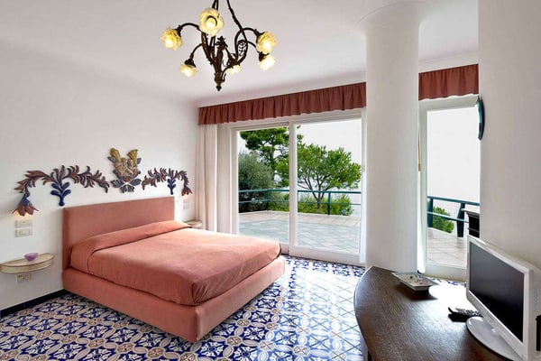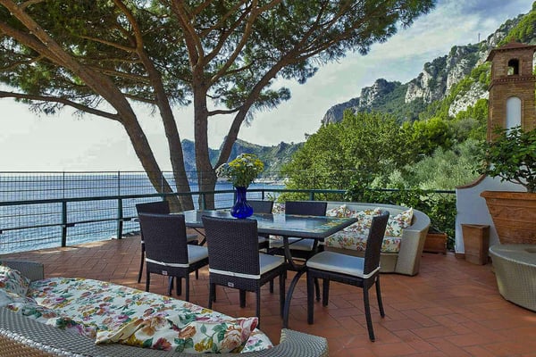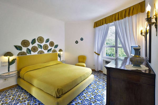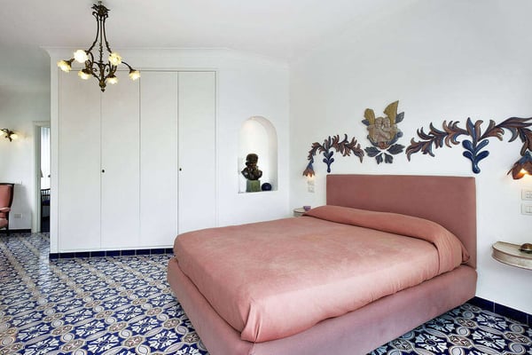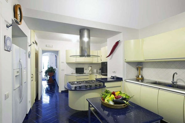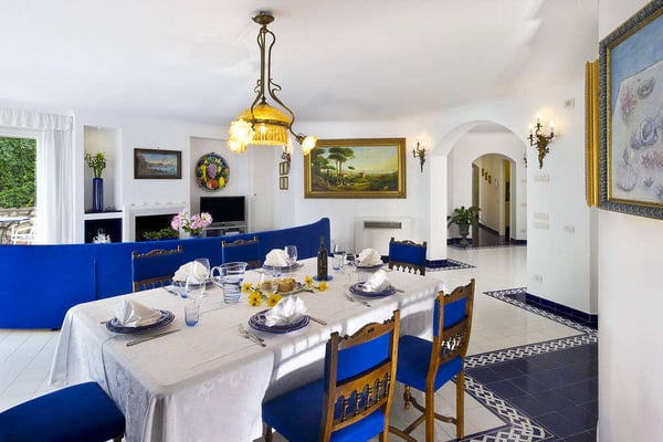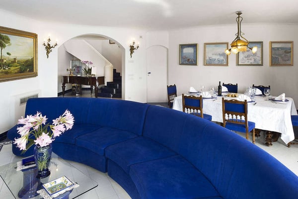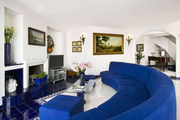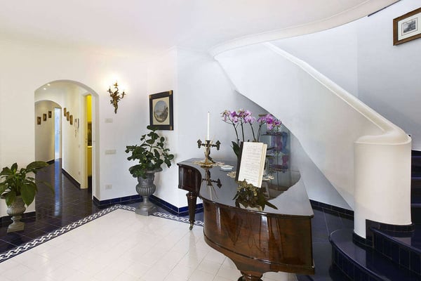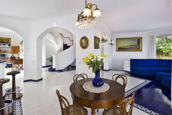 Perfect for friends and families, Nerea frames breathtaking views across its pool to the pebble beach and the turquoise water below. The villa boasts vibrant and bright interiors with splashes of cobalt blue that remind us of the vivacious coastal living. Via approx. 130 steps you can get to the equipped beach establishment below and the nearest village is less than 1 km away, with its shops, restaurants and a larger beach. The barrier-free property has 7 comfortable bedrooms spread on three floors, with elevator, and features a terraced garden with a shimmering kidney shaped salt-water pool on the main terrace. All these characteristics make Villa Nerea a no-brainer choice for the Amalfi Coast vacationer.