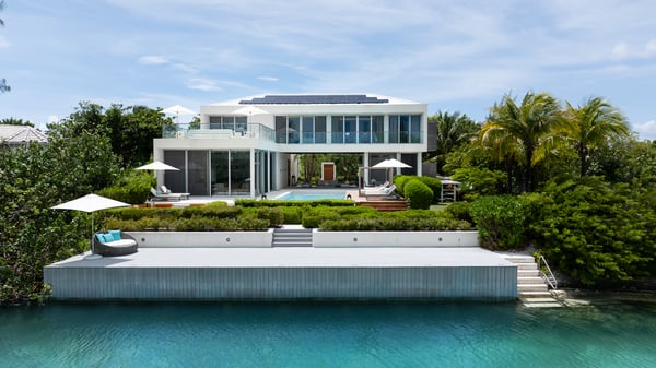 Big Chill is an expansive, modern home nestled in the prestigious canal system of Leeward, Providenciales, offering direct access to the islands’ waterways and effortless exploration by watercraft. With open living spaces, private decks, and sweeping water views, the home frames breathtaking sunrises and sunsets over the canals. Just minutes from some of Turks and Caicos’ best beaches, Big Chill combines waterfront convenience with serene luxury, making it the perfect base for both relaxation and adventure. The living, dining and kitchen area combine for one large ‘Great Room’ that creates a comfortable, social setting that seamlessly opens up to the exterior pool deck via large 11’ Italian glass sliding doors. Along the canal, Big Chill has a large dock, suitable for charter boats to easily pull up and take guests on the adventure of their choice. The villa’s concierge and management team are readily available to make any reservations upon the request of guests. Ask us about ‘Little Chill’, for your opportunity to have a readily available and captained 30’ power catamaran powered by two 300-horsepower Yamahas. The dock also offers paddleboards and kayaks, complimentary for guests to use during their stay. The pool deck offers al-fresco seating throughout, including lounging sofas, sun chairs, a poolside daybed and a fire pit. There is an outdoor kitchen with a wet bar and a large 42” gas barbecue. The pool is a large 15’ x 45’ lap or lounge pool with a maximum depth of 5’ along with an infant’s section that is only 1’ in depth. Running parallel to the pool deck is a mini turf soccer pitch, complete with two goals. Enjoy the open air, upper deck with ample seating and oversized umbrellas. This area overlooks the pool deck below, boat dock and canal. An elevated view ideal for stargazing or watching the sun rise.