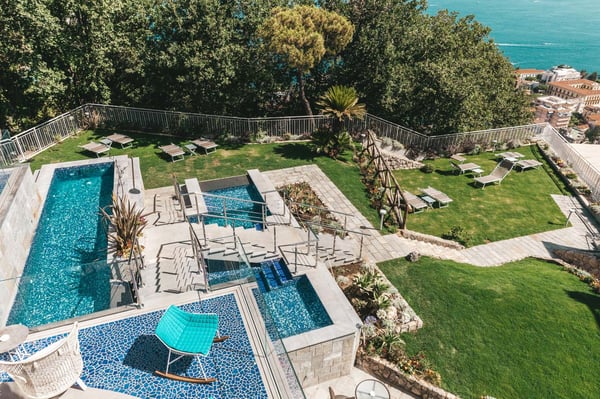 The Sorrento Coast brings everyone together: sea lovers, mountain enthusiasts, gourmand buffs, and even shopaholics. Slightly less known than its south-exposed counterpart, this area offers many opportunities for scenic hiking excursions in the mountains, dives into shimmering crystal waters, as well as unique gastronomic gems, and typical stores and boutiques. The beating heart of this blessed land is Sorrento, the verdant coastal city where Artemunda is located. The four-floored luxury villa was originally built in 1962 and recently gut-renovated, in 2020. It offers an unbeatable vista above the city and the Gulf of Naples in the distance. It is the perfect starting point for day trips to visit iconic sites such as Pompeii, Positano, Amalfi, and Ravello. CIN: IT063080B4MVZZJBXH