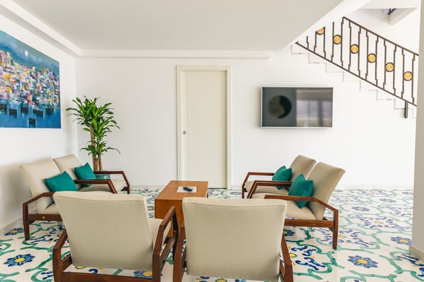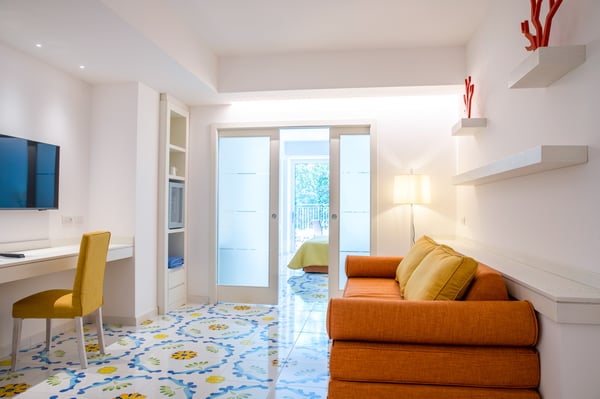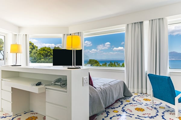 The Villa was awesome. The rooms were spacious, modern, clean and included the latest technology. But most spectacular of all, the view from the balcony looked down upon the beautiful city of Sorrento.