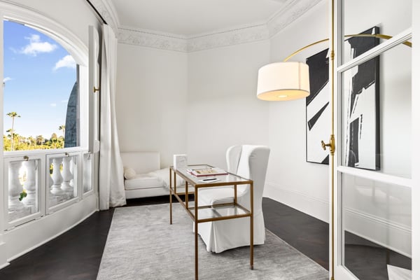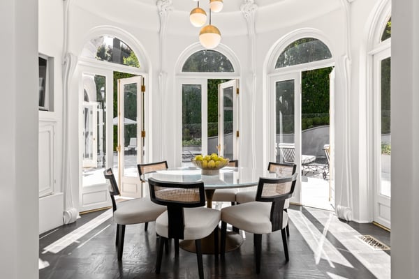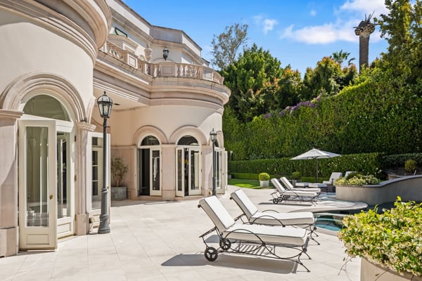 Chateau de Laurel transports you from Beverly Hills into a European dream! This classic estate offers expansive indoor and outdoor spaces, ideal for grand entertaining, extended family vacations, or romantic wedding ceremonies. Spanning 10,000 square feet across three floors, the main floor features a grand foyer with a dual staircase, formal living room, family room with a bar, cozy study, powder rooms, gourmet kitchen, breakfast nook, and formal dining room. The second story boasts five exceptional bedrooms, each with a private en suite bathroom. The lower level is an entertainer’s paradise with a media room and kitchenette, three additional bedrooms with en suite bathrooms, a gym, laundry room, and a spacious garage. Outdoors, lush greenery and a stylish pool create serene spots for relaxation and leisure. Stunning balconies overlook the meticulously maintained grounds, making every moment spent outdoors a delight. Nestled in Beverly Hills, Chateau de Laurel combines European elegance with modern luxury. This property offers a slice of European paradise in Los Angeles, crafted for a life of luxury and sophistication.