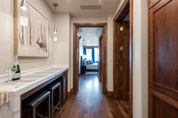 Rental Escapes has partnered with Ski Butlers to offer you the best rental experience in the industry. No more lines. Ski Butlers is a full-service ski and snowboard company that delivers the equipment to you. Contact a villa specialist for more information. Discover all the comforts of a lodge retreat at Silver Strike 201, a beautiful two-bedroom, two-bathroom condo in Park City, sleeping four guests. Nestled in the Empire Pass area of Deer Valley Resort, enjoy ski-in/ski-out access via the Silver Strike Express Lift with Main Street only four miles away. Take advantage of the community hot tub, ski locker room, fitness center, and fire pit. Delight in blissful mornings, taking in slopeside views from the balcony and fun-fueled days conquering the mountain’s endless activities! Step inside this single-story condo, where an enchanting mix of natural textures, modern finishes, and splashes of color creates a charming and stylish environment. The elegant kitchenette is equipped with a Bosch convection oven and Wolf induction stovetop for whipping up meals and a wall-mounted breakfast bar for two to dine. When bedtime arrives, the primary bedroom has a king bed, sweeping mountain views, a private bathroom, a TV, and a sitting area. Chase away the chill by cozying up to the gas fireplace on the plush L-shaped couch and watching TV. Take the provided telescope onto the balcony for a late-night exploration of the starry Utah sky! The guest bedroom with a king bed, TV, and private bathroom also includes the exterior entry to the home. By the entrance are hooks for outdoor gear and a laundry room for freshening up any athletic wear. Silver Strike 201 is the perfect home base for discovering why Park City is an adventurer’s paradise! Exploring the area is easy thanks to garage parking for one vehicle and shuttle service throughout Empire Pass and Historic Main Street. For ski-in/ski-out access, use the Silver Strike Express Lift located through the Ski Lounge on the second floor. To return from the slopes, take Bluebell Run, then Silver Buck Run and Lily Run to the base of the Silver Strike Express Lift.