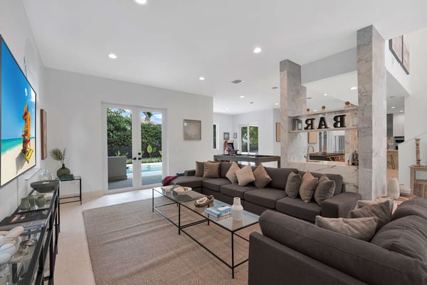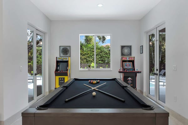 Among the most distinguished premier Miami rentals, Villa Granada stands as a beautifully gated Modern Mediterranean Oasis in the heart of the city. Completely renovated in 2022 to the highest standards, this 3,750-square-foot tropical sanctuary offers an unparalleled retreat for up to 18 guests. Enter into a grand foyer with vaulted ceilings beaming with natural light, and allow the stunning space to take your breath away. The meticulously designed floor plan features an inviting interior with perfectly designated spaces flowing seamlessly for friends and family to enjoy versatility at its best; never miss a beat as you transition from the family room to the wet bar, gaming area, dining, and a custom eat-in kitchen. As your eye takes in the splendor, your attention immediately shifts towards the terrace boasting a resort-style pool and Jacuzzi with lush tropical landscaping making for a private retreat and unforgettable getaway. Lounging poolside never looked so good, whether hosting or just relaxing, the choice is yours with endless possibilities. During the day, enjoy the South Florida sunshine with your favorite cocktails, work up a sweat by trying your hand on the ping-pong table or shooting hoops, and as the sun begins to set, take it all in by soaking in the spa as you consider your plan for the evening. Fire up the grill and enjoy Alfresco dining where privacy is a must or enjoy the vibrant nightlife of the Magic City, you decide!