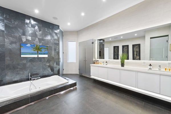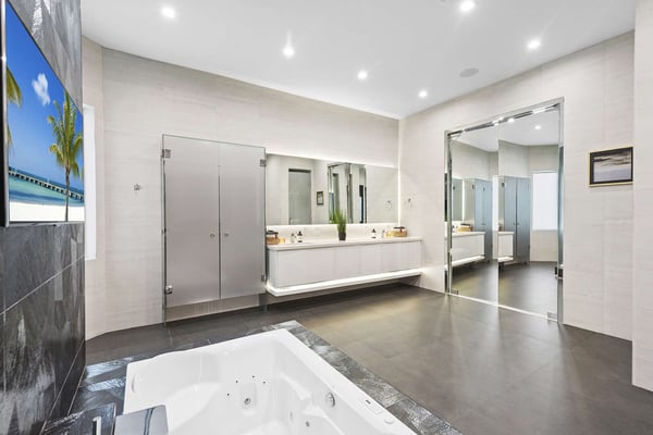 | Bathroom 1 | Primary | full | Toilet, Shower, Whirlpool/Hot tub | En-suite. Double vanity. Rain shower. TV. |