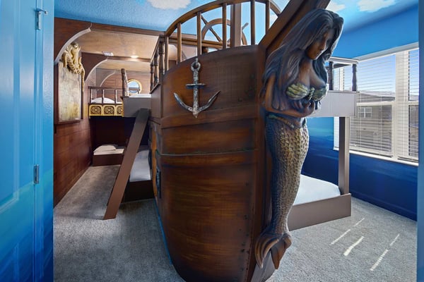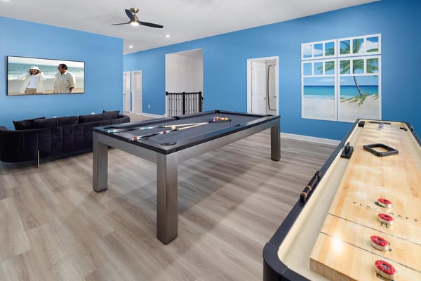 Sail into the perfect getaway at this dream, 6-bedroom retreat steps to Melbourne Beach—and only ~90 minutes to Disney! An open floor plan, sleek modern furnishings, and plush amenities provide everything you need for an unforgettable escape. Whip up gourmet meals in the spectacular chef’s kitchen, enjoy fun and games in the game loft and custom-built karaoke room, or dive into your private pool. Your littlest guests will be dreaming of treasure in the one-of-a-kind pirate-themed bedroom! Steps from the beach, and surrounded by tropical landscaping and breathtaking views in every direction, Villatel’s spectacular villas at Harbor Island Beach Club offer the absolute best in beauty, craftsmanship, and coastal vacationing. In addition to custom-designed 4-8-bedroom villas with private pools and premier in-house amenities, guests of each villa can enjoy direct access to the ocean, a brand-new resort pool with lounge seating and facilities, as well as an expansive private marina. Harbor Island is a brand-new community with many homes that are still being built. While this home is finished and fabulous, expect to see construction in the surrounding area. Also, this home is so new, we don't have official photos yet! But check out these images from similar homes-and rest assured, yours will be better than you could ever imagine. Dive into relaxation mode in this open-concept living/dining area where every element was designed for vacation bliss. Spread out on the super comfy and expansive seating area, perfect for socializing. Indulge in gourmet meals around the sleek modern dining table, which comfortably seats 10. And enjoy easy access to your private pool and patio, featuring separate lounging and dining areas. Stainless steel appliances, crisp white cabinetry, and gleaming black subway tiles create a modern yet comfortable vibe in this dreamy chef’s kitchen. Plus, a large island bar makes for easy snacking and socializing. The kitchen is fully stocked with kitchen tools, baking dishes, crockery, cutlery, and other essentials, ensuring you have everything you need for a seamless culinary experience. Soak in the Florida sun in your private pool and patio area, including comfy seating with super-soft chairs, a roomy dining table, and a stainless-steel barbecue. Cool off in the gleaming waters of the spacious pool, or indulge in a catnap on one of the cushy lounge chairs. The dream continues in six modern bedrooms, featuring high-end furnishings, super swanky décor, and luxe bedding. Young guests will be asking for bedtime when they see the spectacular pirate-themed bedroom, complete with hidden bunk beds and vivid wall art for hours of immersive fun. Extra amenities await at every turn in this custom-designed vacation home. Get your inner rock star on in the vibrant karaoke room. Challenge your guests to shuffleboard or pool in the game loft. Or gather the whole gang for movie night in the private home theater featuring stadium-style seating. Luxurious amenities and charming small-town vibes coalesce in this truly unique vacation haven, where entertainment, culture, nature, and delicious dining options are always on tap.