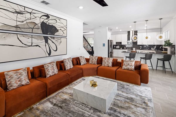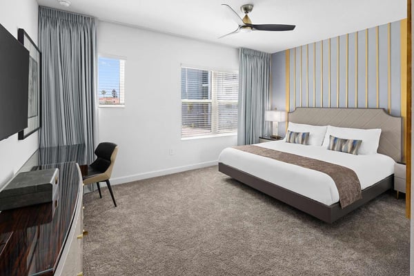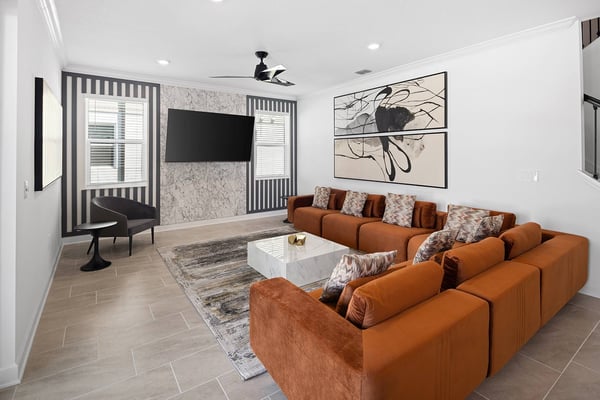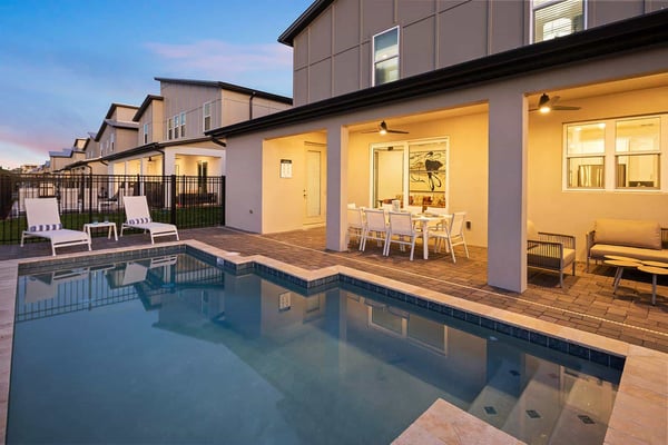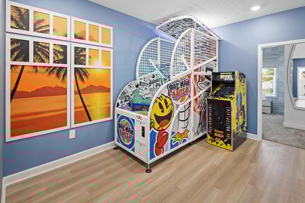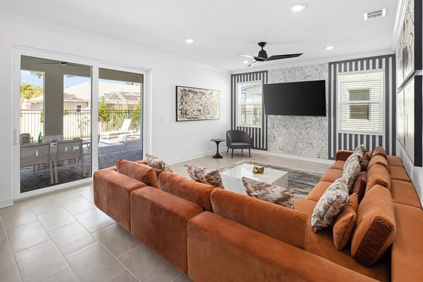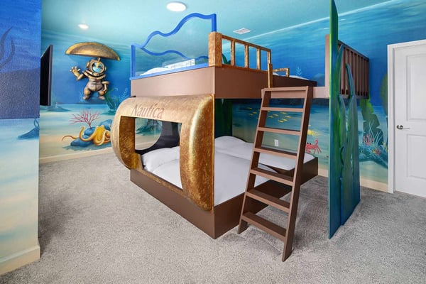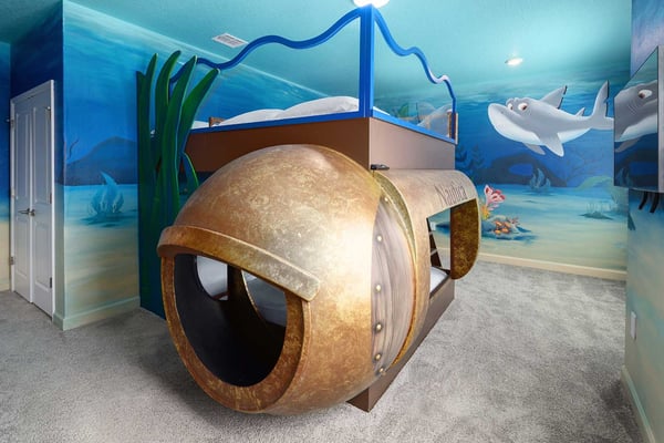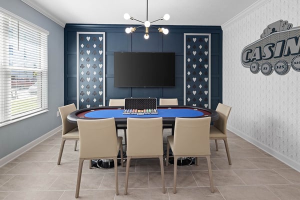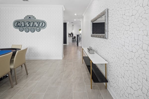 Dive into the sun-sand-and-sea lifestyle of Florida’s Space Coast with an unforgettable stay in this brand-new, custom-designed vacation house in Melbourne Beach. Boasting an airy, open-plan living/dining area, high-end kitchen, and private pool & patio, this spacious home is the perfect place to drop anchor for your next family getaway. Steps from the beach, and surrounded by tropical landscaping and breathtaking views in every direction, Villatel’s spectacular villas at Harbor Island Beach Club offer the absolute best in beauty, craftsmanship, and coastal vacationing. In addition to custom-designed, 4-8-bedroom villas and estates with private pools and premier in-house amenities, guests of each villa can enjoy direct access to Melbourne Beach, a brand-new resort pool with lounge seating, poolside leisure activities, and an expansive, private marina. Harbor Island is a brand new community with many homes that are still being built. While this home is finished and fabulous, expect to see construction in the surrounding area. Warm and welcoming with comfy leather couches, whimsical artwork, and a lovely, spacious dining table, this thoughtfully designed living/dining area is the heart of the home, with plenty of room for the whole family to gather. An open plan means the two areas flow seamlessly together and connect both the large kitchen and private patio. It’s the perfect space for relaxing and reconnecting during your stay. Modern white cabinetry contrasts beautifully with gleaming black subway tiles in this large gourmet kitchen. Spacious countertops provide plenty of prep space, while high-end stainless-steel appliances ensure every meal is a veritable feast. There’s also a full complement of kitchen essentials—from crockery and cutlery to pots, pans, and countertop appliances—ensuring you have everything you need to satisfy your inner chef throughout your stay. Bask in the Florida sun and enjoy the cool breezes off the Atlantic as you relax on your private patio. Outdoor amenities include a large swimming pool, comfy lounge area, gourmet gas barbecue, dining area, and reclining sun chairs. There’s plenty of room for your whole crew in this home’s five spacious bedrooms. Impressive modern furniture, high-end bedding, and luxe en-suite baths set just the right tone for a relaxing getaway. And young guests will be happy as clams in the sensational Under the Sea themed bedroom. Featuring immersive wall decals and custom-designed bunk beds that resemble a submarine, this aquatic wonderland will keep your little fishies busy for hours with imaginative play and fun. Specifically designed to be the ultimate vacation home, the Dealer's Choice villa is packed with bonus features. From the in-home theater featuring stadium-style seating to the arcade lounge and casino-themed game room, entertainment options here are endless. And that’s before you even leave the driveway to discover all that this charming beach town has to offer.