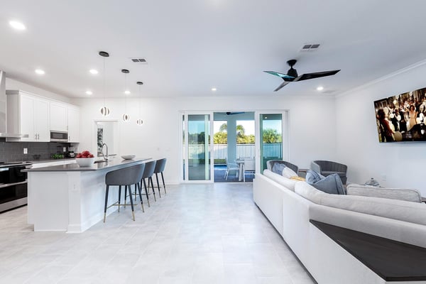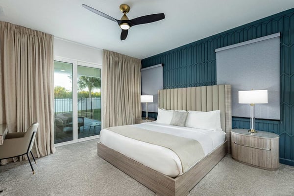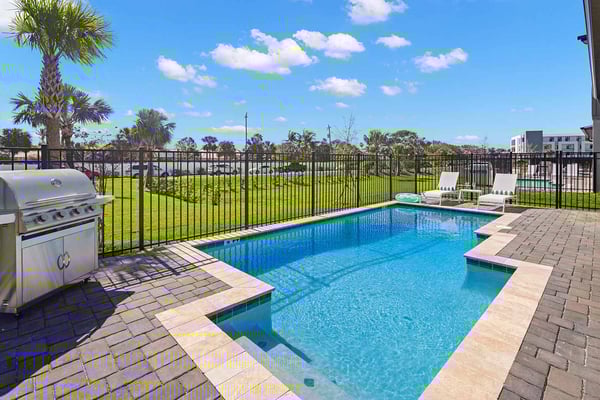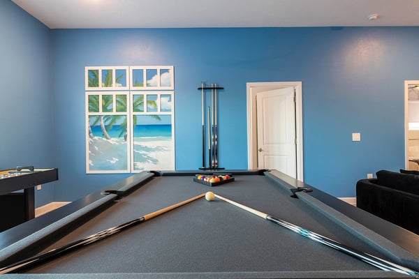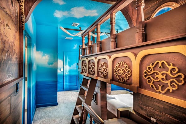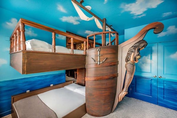 Discover your ultimate beach hideaway in this dreamy villa, steps from the waves of Florida’s Space Coast—and a short drive to Orlando! Impeccable design and a soothing color palette create a relaxing vibe—from the light-filled living room and kitchen to the sanctuary-like bedrooms. Catch a flick in your own theater, belt out tunes in the karaoke room, and lounge or dine at the private pool & patio. Surf’s up in the pirate bedroom, where the kids can sail into slumber aboard a whimsical ship. Steps from the beach, and surrounded by tropical landscaping and breathtaking views in every direction, the spectacular villas at Harbor Island Beach Club offer the absolute best in beauty, craftsmanship, and coastal vacationing. In addition to custom-designed 4-8-bedroom villas with private pools and premier in-house amenities, guests of each villa can enjoy direct access to the ocean, a brand-new resort pool with lounge seating and facilities, and a private marina. Harbor Island is a brand new community with many homes that are still being built. While this home is finished and fabulous, expect to see construction in the surrounding area. Also, this home is so new, we don't have official photos yet! But check out these images from similar homes-and rest assured, yours will be better than you could ever imagine. Blue and sand tones, along with pops of sunset-orange, bring the outdoors inside the open-concept living and dining spaces. Lounge together on a collection of upscale furnishings, watch a game on the oversized TV, or linger over a meal at the spacious dining table. Bask in natural light that filters through the sliding glass doors and floor-to-ceiling windows, and drink in views of palm trees, blue sky, and your private patio oasis. The fully equipped, immaculate kitchen has everything you need to whip up meals and snacks to enjoy inside or out. White marble countertops and shiny white backsplash tiles contrast with roomy black cabinetry and stainless steel appliances. Hang out on stools at the kitchen island and linger with your guests over coffee or cocktails. The Florida sunshine awaits—so step out to your pool oasis and take a dip, or lounge on a recliner with a favorite beach book and a tall drink. Dine alfresco around the roomy patio table and inhale the warm sea-scented air. Your soundtrack? Rhythmic surfing from the nearby beach. Designed for relaxation and pampering, five of the bedrooms enchant with soft colors, plush bedding, textural wall details, and sleek artwork. And just wait till your kids discover the pirate-themed sixth bedroom—which makes hearts soar with its massive wooden ship with portholes, rich detailing, and built-in bunk beds. Ahoy, matey! Your stay gives you bragging rights to super-cool features you won’t find anywhere else. Imagine movie nights in your own private theater with surround-sound and star-studded, space-themed décor. A karaoke room where you and your guests can feel like rock stars. And a recreation loft with your pick of arcade games, billiards, and more. Luxurious amenities and charming small-town vibes coalesce in this truly unique vacation haven, where entertainment, culture, nature, and delicious dining options are always on tap.