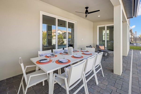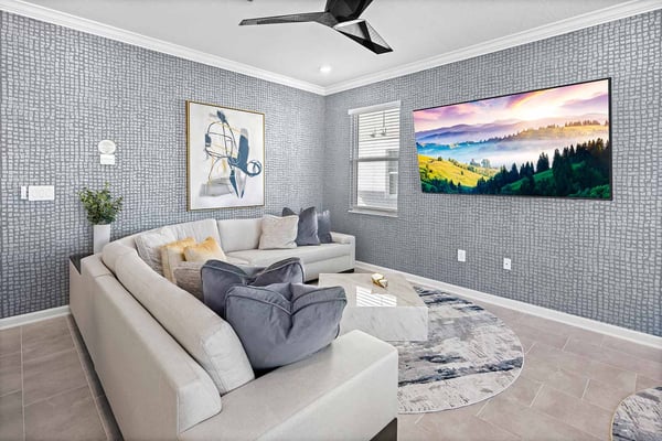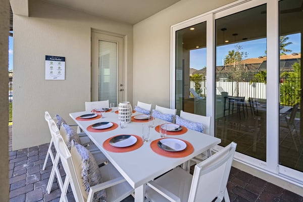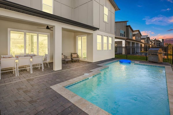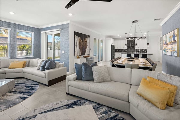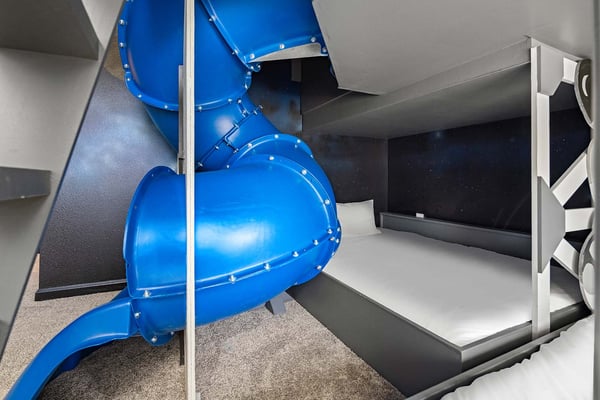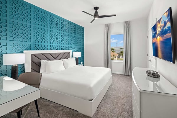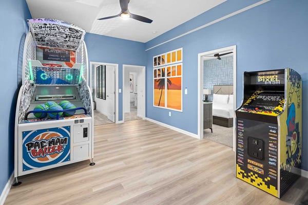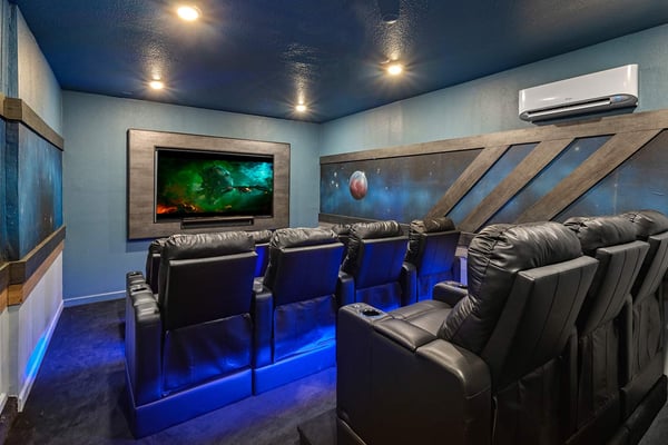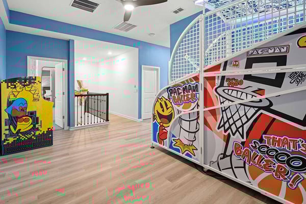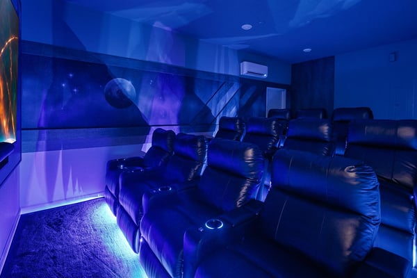 Let Florida’s coastal beauty wash over you at this chic vacay villa, steps to Melbourne Beach, FL—one of the top beaches near Orlando! Live it up in your private theater, decked out game loft, and epic themed rooms—or kick back and fall in rhythm with the tides at your spacious pool & patio. You’ll love the thoughtfulness that went into every last detail, from the open-concept living & dining area with poolside views, to the stylish bedrooms featuring soothing beach tones & contemporary decor. Steps from the beach, and surrounded by tropical landscaping and breathtaking views in every direction, the spectacular villas at Harbor Island Beach Club offer the absolute best in beauty, craftsmanship, and coastal vacationing. In addition to custom-designed 4-8-bedroom villas with private pools and premier in-house amenities, guests of each villa can enjoy direct access to the ocean, a brand-new resort pool with lounge seating and facilities, and an expansive private marina. Harbor Island is a brand-new community with many homes that are still being built. While this home is finished and fabulous, expect to see construction in the surrounding area. You and your guests will find it easy to unwind in these gorgeous, neutral-hued living spaces where Florida sun streams through the windows. Sink into the plush, pillow-strewn sectional sofa and reconnect, or watch a game on the big-screen TV. At mealtimes, gather at the roomy, contemporary dining table under an artful chandelier…and toast to the good life. The sparkling black-and-white kitchen, stocked with essential culinary gear and gadgets, is a chef’s dream. While dinner simmers, lounge at the kitchen island with stools, lit by chic modern accent lighting. Step outside to enjoy your sun-and-fun oasis, making a splash with your guests in the refreshing pool. Eat al fresco at the shaded table, where everything tastes better in the salty sea air. Made for sweet dreams, six of the bedrooms bring the outdoors in with sand-and-surf tones and soothing blue textural wall details. Or choose from two whimsical-themed bedrooms—a pink palace for little fashionistas, and a star-studded lair for wannabe astronauts (they can even sleep in a spaceship!). Get swept into the tides of good times thanks to this villa’s incredible custom features, including a galaxy-themed private movie theater, a cozy karaoke room for nights to remember, arcade games, and more. Luxurious amenities and charming small-town vibes coalesce in this truly unique vacation haven, where entertainment, culture, nature, and delicious dining options are always on tap.