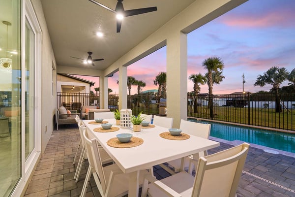 Experience the good life and unleash your inner rockstar at this luxe beach villa featuring a custom karaoke room and VIP features. You’ll love the attention to detail throughout this beautifully designed gem—from the sleek, open-plan living room and chef's kitchen, to the cozy movie theater, storybook-themed bedroom, and the glittering pool with room to lounge and dine. Enjoy all of this & more just steps to the shores of Melbourne Beach, FL—one of Orlando's top beaches, only ~90 min to Disney! Steps from the beach, the spectacular villas at Harbor Island Beach Club offer the absolute best in beauty, craftsmanship, and coastal vacationing. In addition to custom-designed, 4-8-bedroom villas and estates with private pools and premier in-house amenities, guests of each villa can enjoy direct access to Melbourne Beach, a brand-new resort pool with lounge seating, poolside leisure activities, and an expansive, private marina. Chill out with your guests on the spacious wraparound sofa with chic accent pillows in the light-filled living room. Watch a game or show on the big-screen TV, bask in the luxurious, calming ambience, or simply gaze out the sliding glass doors to enjoy your pool and patio views. At mealtime, dine together at the roomy table with plush seating and chic accouterments. After an active day, you’re bound to have a hearty appetite—and this chef’s kitchen will be your go-to. Whipping up a snack or feast is a pleasure with these stainless steel appliances, generous cabinetry and counter space, black tile backsplash, and plentiful cooking gear and utensils. There’s even a breakfast bar/island for mini meals, drinks, or hors d’oeuvres. It isn’t Florida without quality outdoor time—so just pop outside to get some vitamin D and water therapy. Go ahead and lounge on a chaise to catch some rays, then take the plunge when your private pool beckons. Swim, sun, and repeat to your heart’s content. You can even eat poolside on the covered patio with a perfect dining set-up. Snuggle in for a comfy night’s sleep in the five sumptuous bedrooms designed for the grownups in your group. A muted colour palette, minimalist-contemporary design touches, and upscale bedding create the perfect place to nestle for the night. Custom-made for your smallest guests, a fanciful “Storybook Village” bedroom enchants with mountainous wall art and a whimsical playhouse/cottage with built-in bunk beds! This home’s recreation spaces are the star attraction. Pump up the music and belt out your favourite song lyrics in the custom karaoke room, with its mini-stage, cushy sofa, and groovy wall art. The home theatre with space-themed décor is your spot for unforgettable movie nights. And don’t forget to head to the loft to indulge in classic arcade games, billiards, and more. Luxurious amenities and charming small-town vibes coalesce in this truly unique vacation haven, where entertainment, culture, nature, and delicious dining options are always on tap. Kindly note: Harbor Island is a brand new community with many homes that are still being built. While this home is finished and fabulous, expect to see construction in the surrounding area. Also, this home is so new, we don't have official photos yet! But check out these images from similar homes, and rest assured, yours will be better than you could ever imagine.