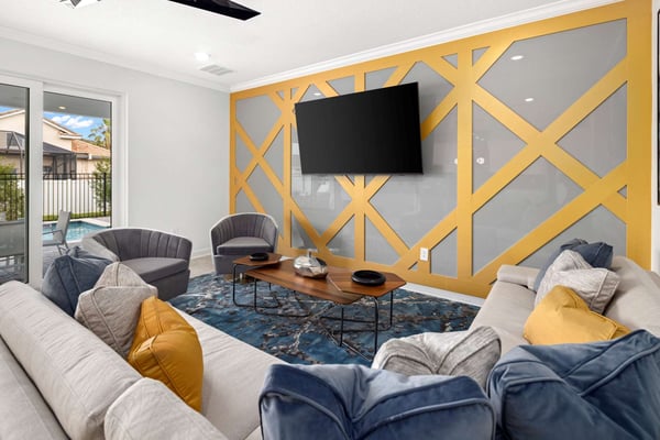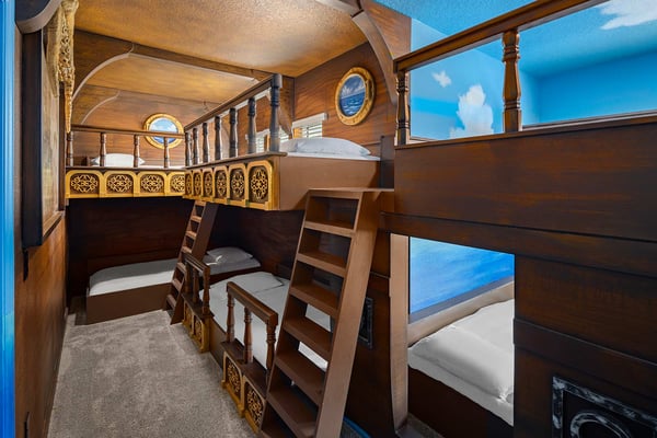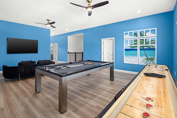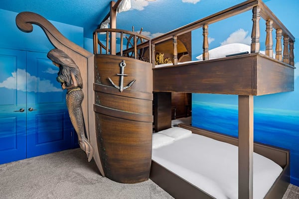 Kindly note: Harbor Island is a brand new community with many homes that are still being built. While this home is finished and fabulous, expect to see construction in the surrounding area. Also, this home is so new, we don't have official photos yet! But check out these images from similar homes-and rest assured, yours will be better than you could ever imagine. Steps from one of Orlando's top beaches, the spectacular villas at Harbor Island Beach Club offer the absolute best in beauty, craftsmanship, and coastal vacationing. In addition to custom-designed, 4-8-bedroom villas and estates with private pools and premier in-house amenities, guests of each villa can enjoy direct access to Melbourne Beach, a brand-new resort pool with lounge seating, poolside leisure activities, and an expansive, private marina. The spacious living/dining area was designed to feel like a private island escape with warm tones of blue and beige highlighted with subtle gold accents. The whole family can gather together on the extra-large sofa to watch the game, or sit down to a gourmet meal at the elegant modern dining table. Inspired by the coastal surroundings, this exceptional chef’s kitchen gleams with dark blue subway tiles, cool gray counters, and clean white cabinetry. A spacious island bar with comfy stools provides a perfect spot for snacks or cocktails. High-end stainless steel appliances and an impressive list of cooking/dining essentials ensure you have everything you need to whip up endless gourmet feasts. All hands on deck! Your private, covered patio and sparkling pool provide an ideal space for enjoying the Florida sun. Fire up the BBQ, take a refreshing dip, or simply relax on one of the cozy lounge chairs. The nearby Atlantic Ocean provides a fresh breeze—and remember, the beach is just a few minutes away on foot. Your entire crew will sleep soundly in this home’s six fabulous bedrooms. Each guest suite features a soft colour palette, plush furniture, and carpeted flooring to provide the perfect setting for a relaxing stay. The five full bathrooms include high-end finishes and spa-like amenities. Your youngest mates will be dreaming of sparkling treasure in the custom-designed Pirate theme room. Ocean-inspired wall art and a whimsical, ship-inspired bunk bed will have their imaginations setting sail. Custom-designed from start to finish, this exceptional vacation home was built to exceed expectations. Special amenities include a private home theatre with stadium-style seating and arcade-style games; a loft area with a pool table and shuffleboard; a separate game room with darts and games; and a private backyard complete with a covered patio, BBQ, and swimming pool.