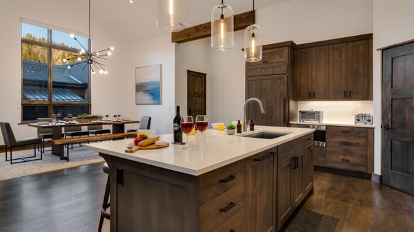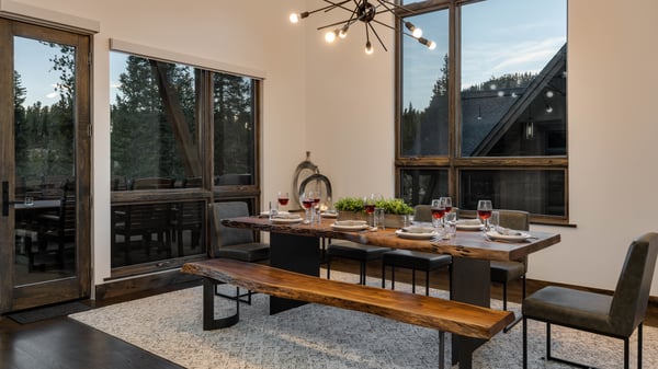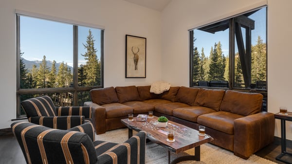Ski Butlers offers you the best rental experience in the industry. No more lines. Ski Butlers is a full-service ski and snowboard company that delivers the equipment to you. Contact a villa specialist for more information. Luxury and privacy meet in this beautiful home on the Blue River in Breckenridge, with spectacular views of the Ski Area, the Ten Mile Range, and Quandary Peak. Situated just minutes from skiing and historic downtown Breckenridge, with fishing and hiking access just outside, the location of this home is just as spectacular. Mountain modern with stylish décor and a classic vibe, Retiro del Rio (meaning River Retreat in Spanish) is truly a quiet place where you can rest and relax on your mountain vacation. A comfortable great room has high ceilings, a gas fireplace with a beautiful stone accent wall with a mounted flat-screen TV. Large windows fill the entire open floor plan with natural light, letting you enjoy the captivating view from every room. A gorgeous kitchen will delight the cooks in your group, with custom cabinetry, high-end appliances, and plenty of workspace, including a center island with seating for four. An open floor plan makes for easy entertaining and enjoying time together. An elegant dining area includes a unique custom wood table, stylish chairs and lighting, creating a wonderful space for family meals. Step out onto an incredible deck with a gas grill for one-of-a-kind al fresco meals and happy hours in warmer months, recapping your days' events while soaking in the views and enjoying the peaceful ambiance. Below, the Blue River flows by, adding another welcome touch of nature to your vacation. On the upper level is the primary suite, a lovely oasis with stylish wood furnishings including a king bed, dresser, a sitting area, and gas fireplace with mounted flat screen TV. A spa-like bathroom includes a soaking tub, a walk-in shower, and dual vanities. Remote workers will appreciate an office area with a desk and chair. Downstairs is where movie and game night begin, on a comfortable sectional with a large flat-screen TV and SubZero mini fridge. Nearby, guests will enjoy three bedrooms, a king suite, and a queen suite, each with ensuite baths, and a bunk room with two twin bunks the kids will love with a shared bath. Step outside to a fantastic lower patio, complete with a fire pit for s’mores and storytelling. Listen to the tranquil sounds of the river and feel yourself unwind. Relax in a private hot tub after a long day of adventure and enjoy your soak with some Colorado stargazing. Other amenities include a laundry room with a washer and dryer, a gear storage room, an upstairs powder bath, and a heated garage with space for two vehicles. Four-wheel drive is required in the winter months. Regretfully, weddings and events are not permitted. This home enjoys complimentary use of the shuttle, mid-November through mid-April, using the convenient shuttle app to schedule pickups. The use of the shuttle is on a first-come, first-served basis. This home does not have air conditioning. Colorado's cool summer nights will keep this home comfortable by opening windows after the sun goes down, and then closing the windows and blinds during the day. Utilizing the overhead fans, if available, keeps airflow moving, and additional floor fans can be found in many bedroom closets. Can't live without it? A/C units may be available for rent for an additional fee. Retiro Del Rio Business License: STR-2101999 2,803 sq. ft.