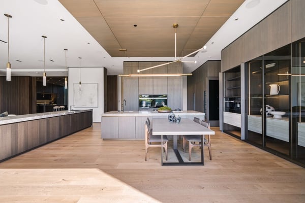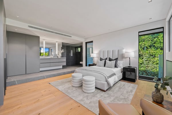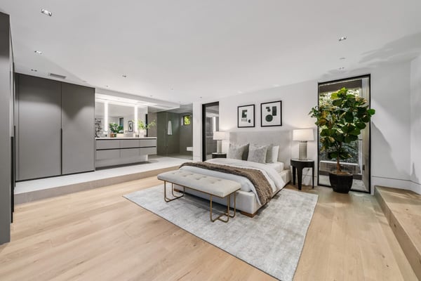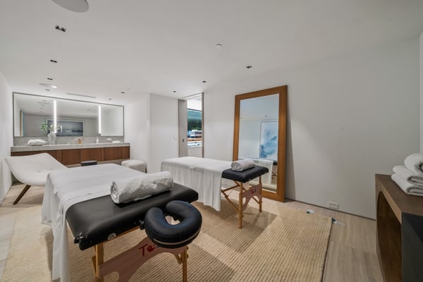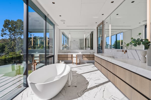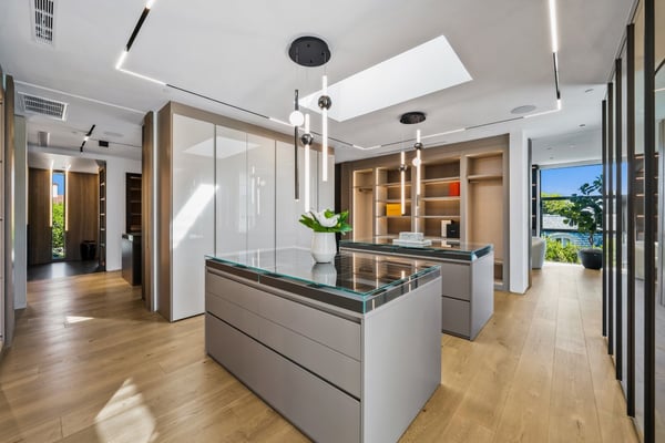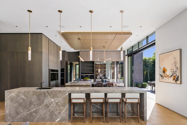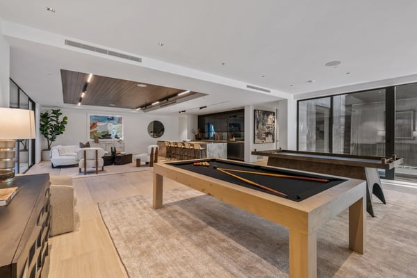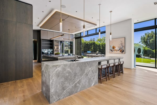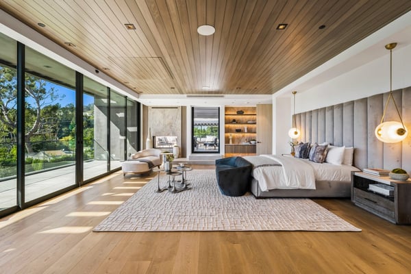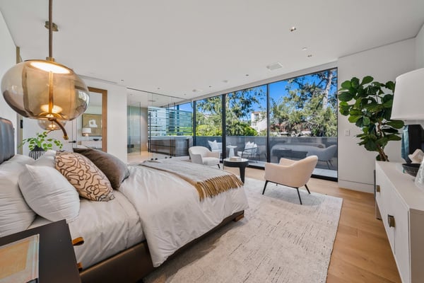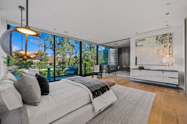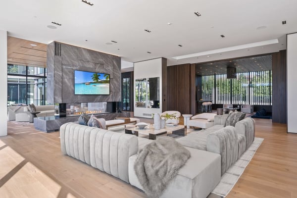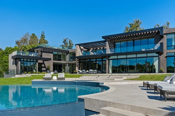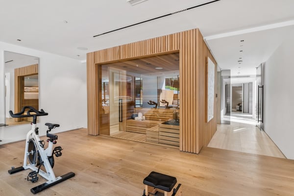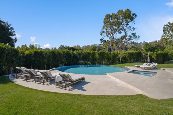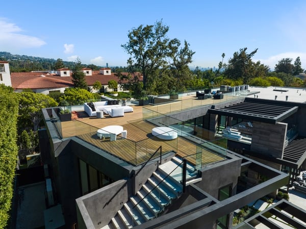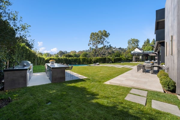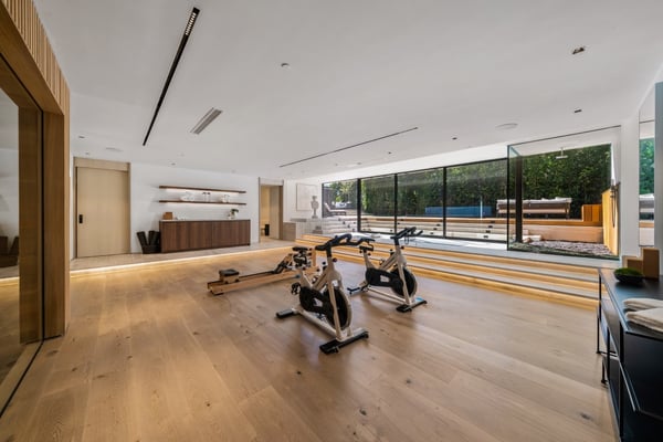 The Forza Modern, a stunning, newly built architectural estate nestled within one of Holmby Hills’ most exclusive, private neighborhoods, offers an abundance of amenities and breathtaking living spaces designed to capture the home’s incredible valley, mountain, and tree-top vistas. This 6-bedroom, 12-bathroom sanctuary unfolds across 3 expansive levels. Inside, discover a chef’s kitchen boasting Miele ovens, two mini wine cellars, and a charming breakfast nook. All bedrooms at the Forza Modern feature ensuite baths and spacious closets. The primary suite provides a private balcony, a concealed ceiling TV, dual walk-in closets, a fireplace, and two luxurious full baths. Additional highlights include two laundry rooms, a dedicated office, an elevator for effortless access, a temperature-controlled wine cellar, a state-of-the-art theater, and two separate two-car garages. The lower level of the Forza Modern transforms into a complete entertainment zone, complete with a bar and a resort-inspired gym and spa boasting a sparkling pool, a dedicated yoga and massage room, and more. Step outside to meticulously manicured grounds featuring a sparkling pool and spa, alongside a fully equipped BBQ kitchen, perfect for al fresco entertaining.