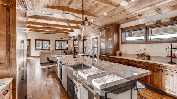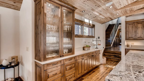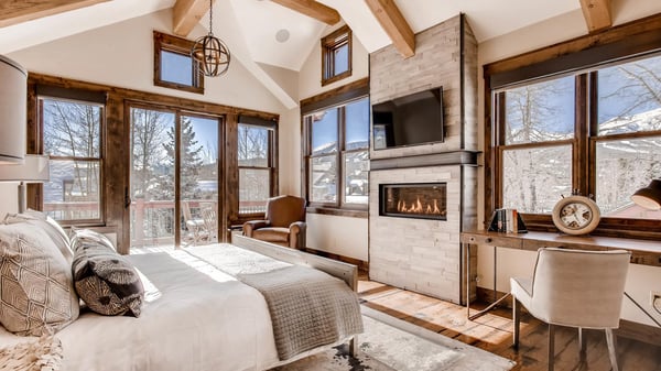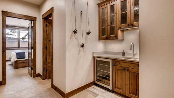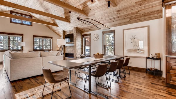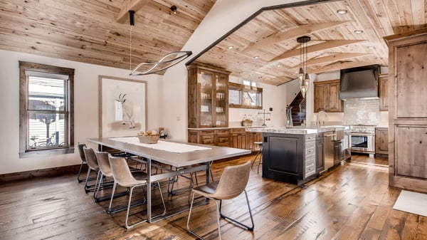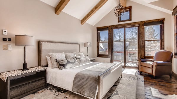 Ski Butlers offers you the best rental experience in the industry. No more lines. Ski Butlers is a full-service ski and snowboard company that delivers the equipment to you. Contact a villa specialist for more information. Situated in the historic district of downtown Breckenridge, Harris House is a nostalgic mining cabin renovated into a thoughtful and elegant custom log home. Guests will enjoy modern décor and amenities throughout this 3,800-square-foot contemporary home with multiple entertainment spaces, a private hot tub, and spectacular views. Just a 3-block walk to the main street and one block to the free skier shuttle, Harris House is in the heart of everything Breckenridge has to offer. An inviting open floor plan includes high tongue and groove ceilings with elegant beams, wood floors, and upscale rustic charm. A gourmet kitchen features a farmhouse sink, a beautiful granite countertop island with seating for 4, and high-end stainless-steel appliances. Adjacent to the kitchen is an elegant dining area that seats 10, with a wet bar and comfortable seating. The great room offers a cozy sectional sofa, striking stone ambient fireplace, TV, and plenty of natural light. Enjoy the enticing outdoor area with a gas fire pit, grilling area, and hot tub, all with views of the ski mountain. The primary king suite is on the upper level with beautiful mountain views, a gas fireplace, a TV, a work desk, and a private deck. An ensuite bathroom features a soaking tub, a walk-in shower, and dual sinks. On the main level is a king room with a twin sleeper chair, and an ensuite bath. Retreat to the lower-level family room with an extra-large sectional sofa, TV, and wet bar. Three beautifully furnished and designed bedrooms include a king suite with an ensuite bath, a king room with a twin trundle and ensuite bath, and an inviting bunkroom with two extra-long twin bunk beds and a hall bath. Other amenities include a laundry room and large mudroom with plenty of ski and gear storage, a 2-bay garage, and parking for 3 cars total. TV service is streaming only and includes YouTube TV. Create your memorable vacation at this charming historic home, a piece of history restored to modern elegance in the Colorado mountains. Regretfully, weddings and events are not permitted. This home enjoys complimentary shuttle use, from mid-November through mid-April, using the convenient shuttle app to schedule pickups. The use of the shuttle is on a first-come, first-served basis. This home has WIFI and comes fully stocked with paper products (paper towels, toilet paper, tissues), bathroom toiletries (shampoo, conditioner, body wash, hand soap), and detergents (dish, dishwasher, and laundry) as well as clean bed linens and towels. In addition, the kitchens are stocked with aluminum foil, plastic wrap, trash bags, sponges, soap, salt and pepper, coffee, tea, cookware, bakeware, dishes, glasses, utensils, and standard small appliances. This home does not have air conditioning. Colorado's cool summer nights will keep this home comfortable by opening windows after the sun goes down, and then closing the windows and blinds during the day. Utilizing the overhead fans, if available, keeps airflow moving, and additional floor fans can be found in many bedroom closets. Can't live without it? A/C units may be available for rent for an additional fee. Harris House Business License: 416080002 3,819 sq. ft.