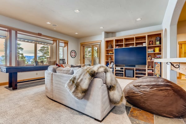 Ski Butlers offers you the best rental experience in the industry. No more lines. Ski Butlers is a full-service ski and snowboard company that delivers the equipment to you. Contact a villa specialist for more information. Welcome to Moose Tracks Lodge, a 5,600-square-foot, brilliant timber frame home in the Highlands of Breckenridge. Enjoy luxurious, high-end finishes throughout this six-bedroom private home and lavish amenities. The main level consists of the kitchen, great room, and dining area in a large, open space with plenty of bright Colorado daylight shining in and abundant space for everyone to gather around. A convenient powder bath is located off the great room near the front entry. Aspiring chefs of all levels will enjoy getting creative in the gourmet kitchen which boasts two ovens, two dishwashers, two sinks, gorgeous granite countertops, a gas cooktop, a wine refrigerator, and professional-grade stainless steel appliances. The adjacent dining area seats 11 at the table, with six more seats available at the kitchen bar so everyone can dine together comfortably. After dinner, retreat to the great room end enjoy sprawling mountain vistas, a gas fireplace, large smart TV, and plush sectional sofa. Step outside onto the expansive 1,600 square foot deck and experience the natural beauty that surrounds you and picturesque mountain views with views of Lake Dillon in the distance. An exquisite primary king suite room is situated on the main level and features a king bed, TV, deck access, and private ensuite with double sinks, and a large walk-in steam shower. You’ll also conveniently find a washer and dryer in the spacious closet. A second king suite with skylights and a desk area is also on the main level, just off the great room and kitchen. On the upper level, you’ll find 2 bedrooms and a great loft area with beautiful wood beam accents, a sitting area, a TV, and a billiards table. A fun and cozy bunkroom the kids will love has a twin bunk and a twin over queen bunk, desk, and ensuite bathroom. On the other side of the loft area is a comfortable king suite with incredible mountain views. The fun begins on the lower level of Moose Tracks Lodge in the cozy and beautiful rec room with large smart TV, a large sectional sofa, shuffleboard, and a spacious kitchen/wet bar with a full fridge, dishwasher, sink, and bar seating. This popular room has easy access to the private hot tub for a relaxing soak. Down the hall from the wet bar are a bathroom and a fun game room with a foosball table, an arcade game table, a TV, and side access to the hot tub as well. A king suite is also on the lower level, with a TV, patio access, and a private ensuite. From the lower level, easily access a studio apartment over the garage for a wonderful private extra space for guests, with its own sitting area, TV and queen sleeper sofa, kitchen, king bed, and bathroom. A closet has an extra washer and dryer. The garage offers a convenient area in one of the bays with benches, boot warmers, and ample space to prepare for the day’s adventures. A washer and dryer are available in the hallway near the garage. Guests have access to the 2-car garage with parking for five cars total. 4-WHEEL DRIVE REQUIRED in winter months This home is pet-friendly with an additional fee and written approval. Please contact us for details. Regretfully, weddings and events are not permitted. This home enjoys complimentary shuttle use, from mid-November through mid-April, using the convenient shuttle app to schedule pickups. The use of the shuttle is on a first-come, first-served basis. This home has WIFI and comes fully stocked with paper products (paper towels, toilet paper, tissues), bathroom toiletries (shampoo, conditioner, body wash, hand soap), and detergents (dish, dishwasher, and laundry) as well as clean bed linens and towels. In addition, the kitchens are stocked with aluminum foil, plastic wrap, trash bags, sponges, soap, salt and pepper, coffee, tea, cookware, bakeware, dishes, glasses, utensils, and standard small appliances. This home does not have air conditioning. Colorado's cool summer nights will keep this home comfortable by opening windows after the sun goes down, and then closing the windows and blinds during the day. Utilizing the overhead fans, if available, keeps airflow moving, and additional floor fans can be found in many bedroom closets. Can't live without it? A/C units may be available for rent for an additional fee. Moose Tracks Lodge Business License: 439300001 5,604 sq. ft.