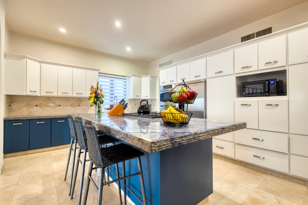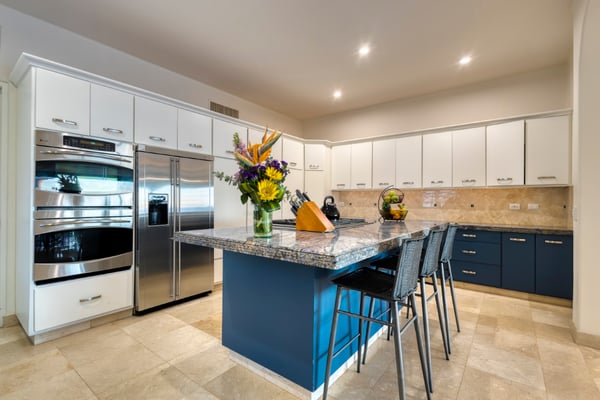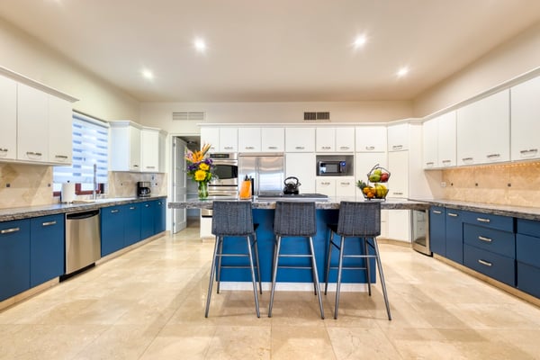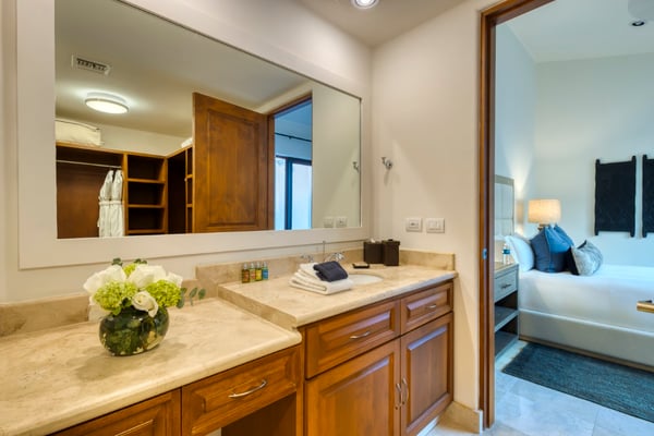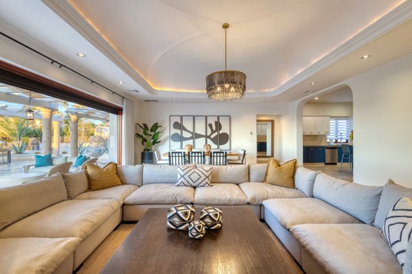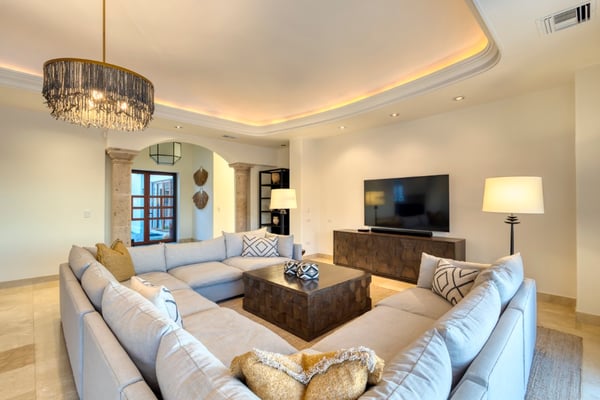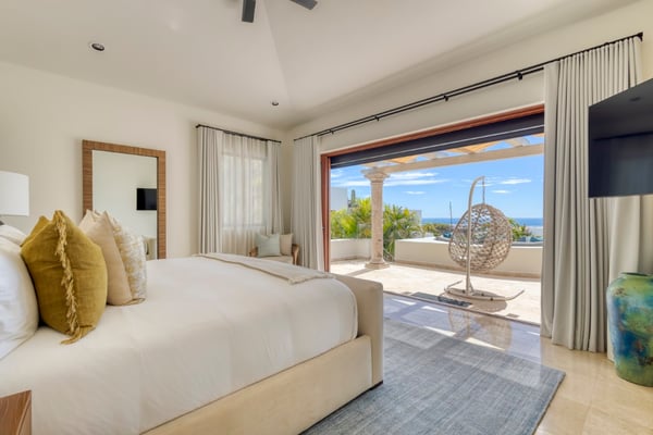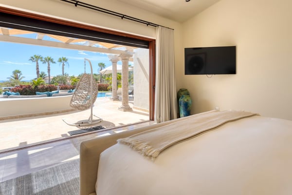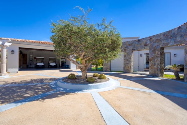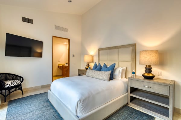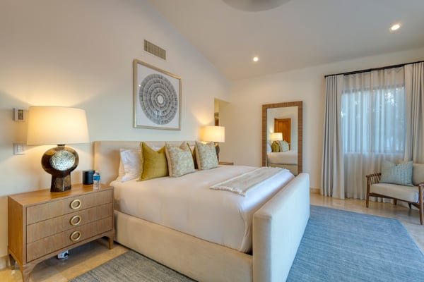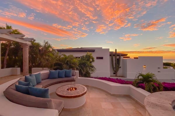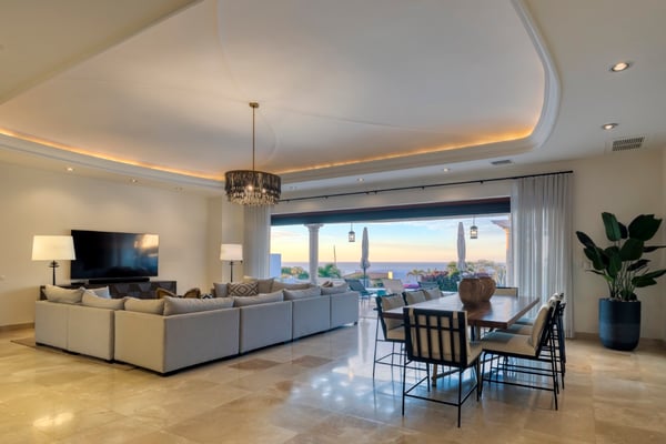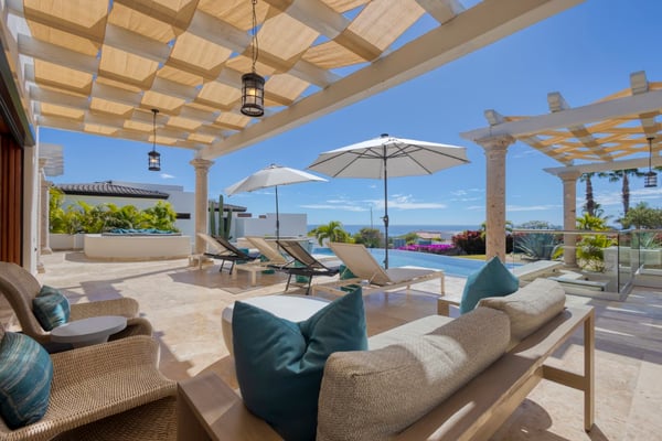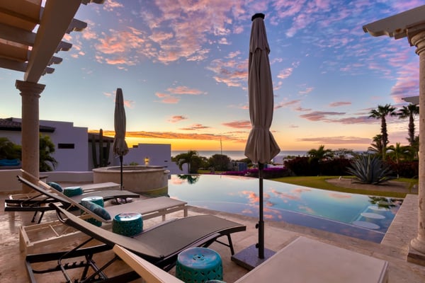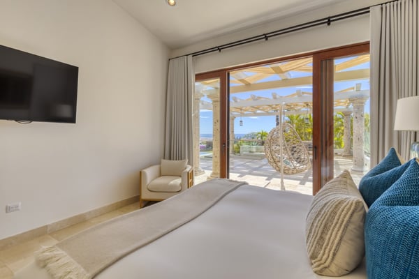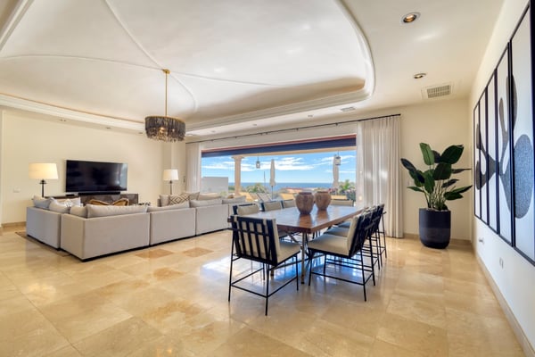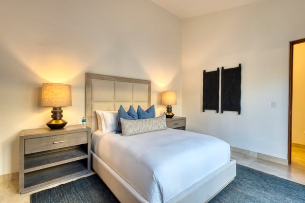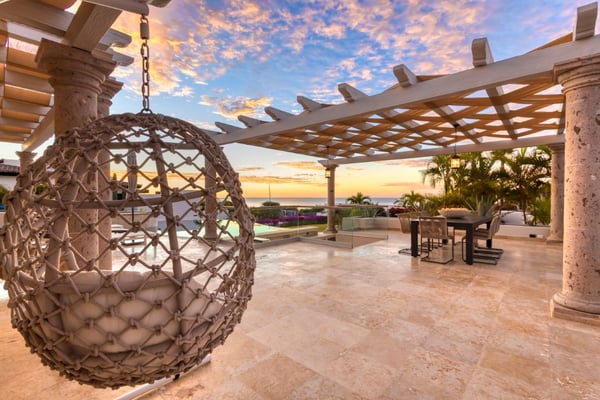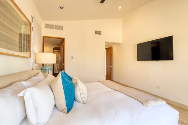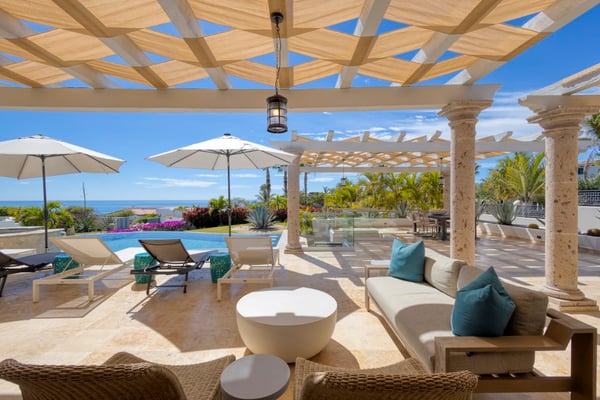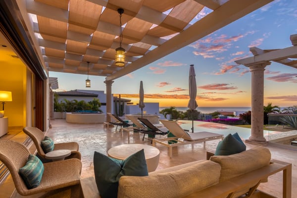 Casa Micana has four bedrooms a large open-concept living space, it's a hacienda-style home within an exclusive gated community, offering a secondary view of the lush golf course. Enjoy an expansive outdoor living area featuring an infinity-edge pool, swim-up bar, hot tub, barbecue area, fire pit, and spacious lawn area.