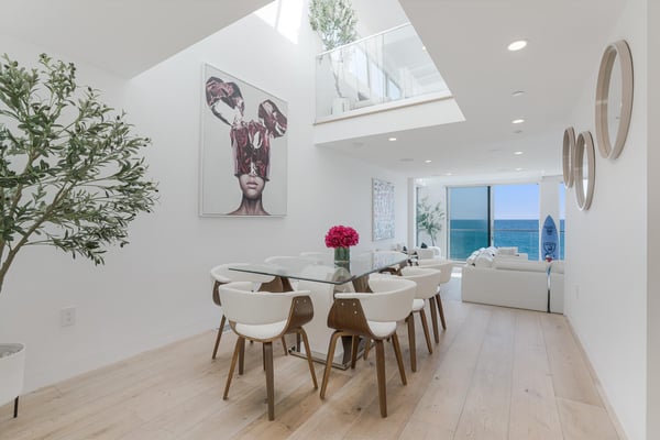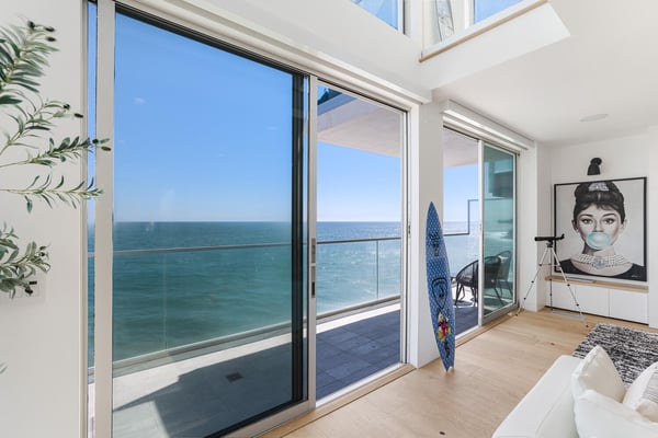 Modern luxury perched right above the Pacific Ocean with direct beach access, this sprawling 3 story home is located in the heart of the Las Tunas Beach stretch of Malibu. Situated in the perfect spot in-between the beaches of Santa Monica and the Lumber Yard shopping mecca in the center of Malibu directly off the Pacific Coast Highway. Each of the 3 sprawling bedroom suites includes a King-size luxury bed with an en-suite bathroom. The open living spaces are highlighted by high ceilings and unobstructed ocean views. Surrounded by exceptional pop art and beautiful cozy furnishings, guests can enjoy this Malibu sanctuary any time of year. There was no expense spared when they designed this gourmet chef’s kitchen. It includes state-of-the-art appliances and all the finest dining accessories you need to enjoy this home away from home. With plenty of garage space as well as several spots in the driveway, you won’t have any trouble parking at the beach this summer.