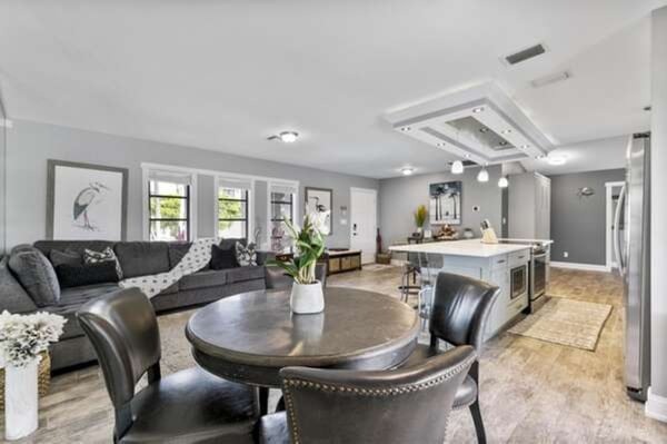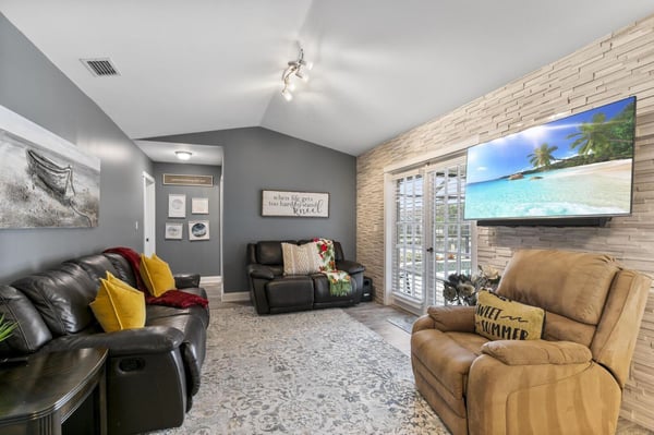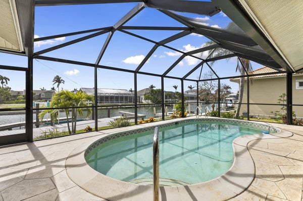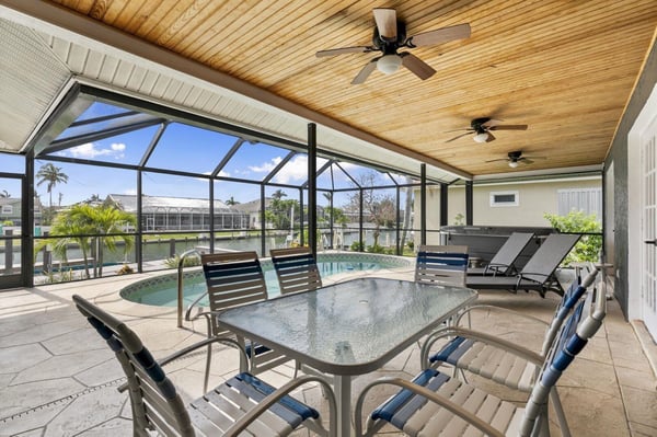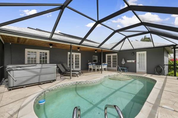 Experience luxury living at its finest at Primrose on Marco Island. Nestled in a prestigious neighborhood, this vacation home offers a perfect retreat for families or groups of friends. Unwind in three spacious bedrooms, each uniquely designed for comfort. The primary suite features a lavish King bed, while the second bedroom offers a Queen bed. For a touch of whimsy, the third bedroom boasts a treehouse-inspired bunk bed, perfect for the little ones. A convenient Murphy bed in the living area provides flexibility without compromising style. Indulge in modern amenities throughout the house, from the sleek primary bathroom with a luxurious walk-in rain shower to the fully equipped laundry room for your convenience. Stay connected with high-speed WiFi and enjoy the thoughtful details that make this vacation home feel like your own. The heart of the home is the expansive entertaining space, where a gourmet kitchen seamlessly blends with the living area. Cook up a storm in the stylish kitchen with granite counters and stainless steel appliances, or gather around the breakfast bar for a casual meal. Relax and unwind in the cozy living room or retreat to the second seating area with leather recliners. Step outside to the screened-in private pool overlooking the canal, where you can soak up the sun, take a leisurely swim, or simply enjoy the tranquil surroundings. The lanai is the perfect spot for outdoor dining, games, or simply relaxing with a good book. Complete your vacation experience with a dip in the private hot tub, ideal for unwinding after a day of adventures on Marco Island. Create treasured memories with loved ones in this ultimate retreat that offers relaxation, fun, and luxury all in one place. Located in beautiful Marco Island, this waterfront property is a pet-friendly (non-refundable fee will apply) oasis waiting to welcome you. Plan your escape to Primrose and indulge in a vacation like no other.