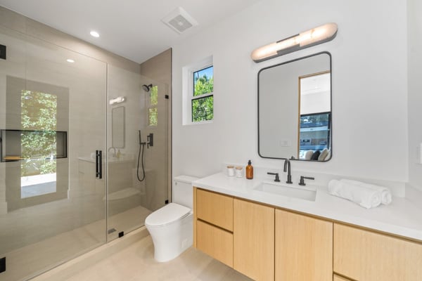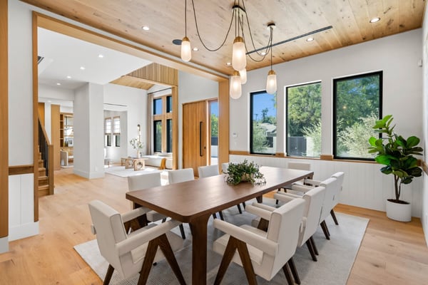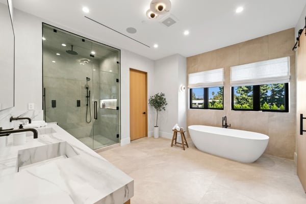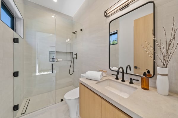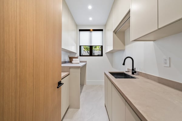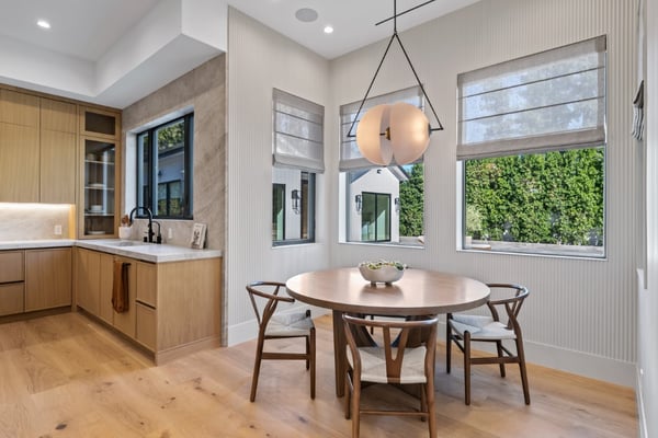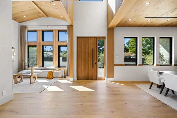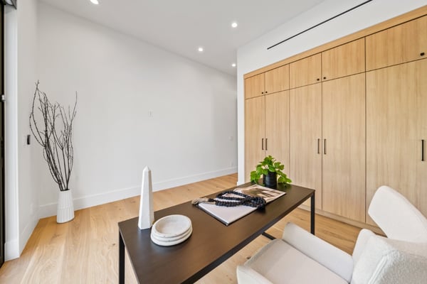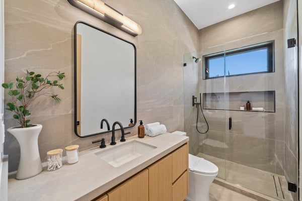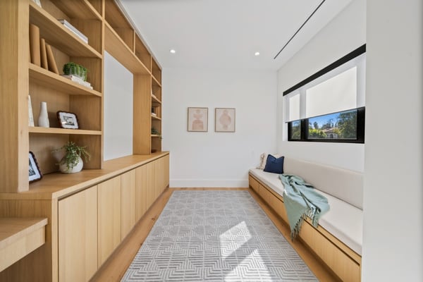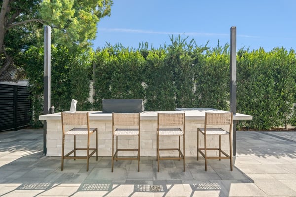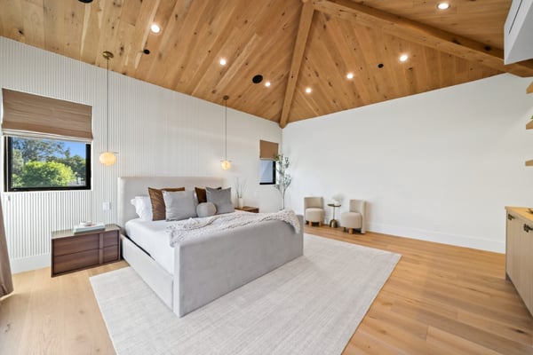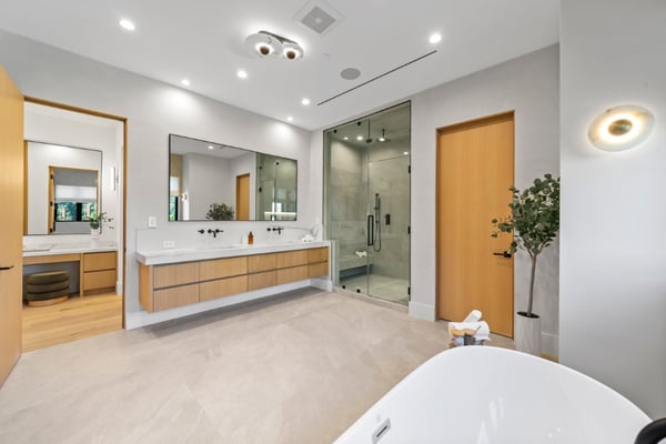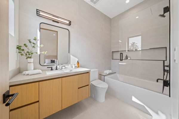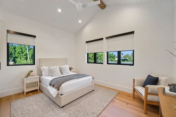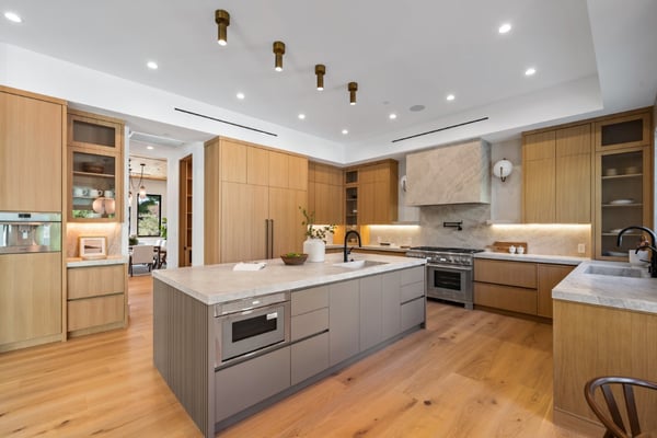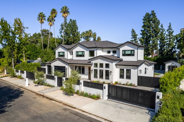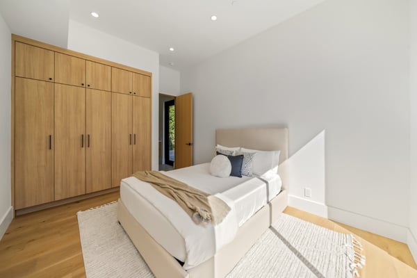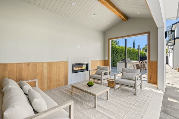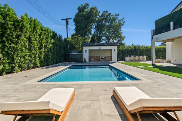 This property is only available for monthly stays with a minimum of 31 nights. If you are interested in short-term stays, please contact our Villa Specialists for your luxury travel needs. Step into the foyer and be welcomed by a spacious living room adorned with a wall of built-ins, seamlessly connected to a formal dining room. This exquisite residence offers 5 bedrooms plus a loft, in addition to a backhouse ADU with 800 square feet, featuring one bedroom and one bathroom, culminating in a total of 6,600 square feet of luxurious living space. Inside, the home boasts a contemporary design with high ceilings, clean lines, and abundant natural light. The living room is a cozy yet chic space, centered around a minimalist fireplace flanked by built-in wooden shelves. Large glass doors provide a picturesque view of the backyard and pool & spa area, enhancing the sense of openness. The kitchen is a culinary masterpiece, equipped with top-of-the-line appliances, sleek cabinetry, and a large island with a marble countertop. Warm wood tones blend seamlessly with modern finishes, creating a harmonious and inviting atmosphere. Adjacent to the kitchen, a dining area features ample space for family meals and entertaining guests. The primary suite is also a luxurious retreat featuring a bathroom with a separate tub, shower, dressing table and dual vanities. Gleaming hardwood floors flow throughout the home, adding warmth and sophistication. Overall, this home combines modern design elements with luxurious amenities, offering a perfect blend of comfort and style for contemporary living.