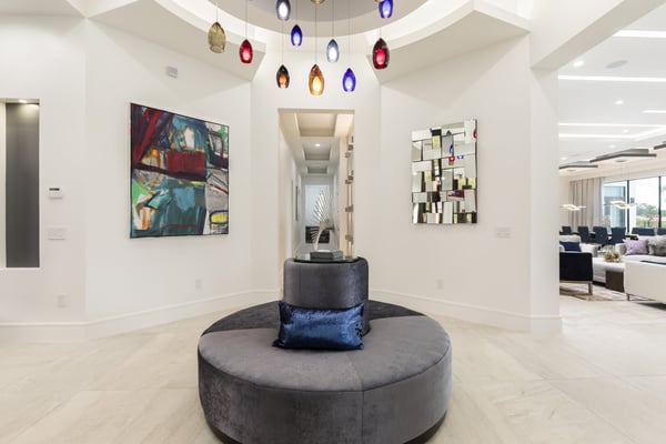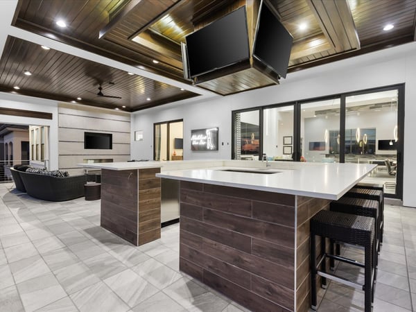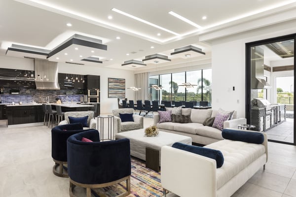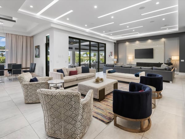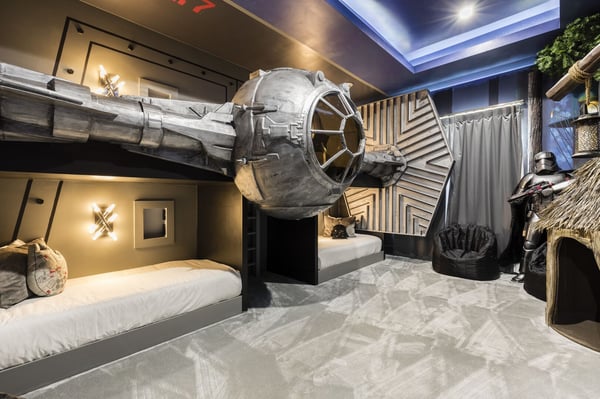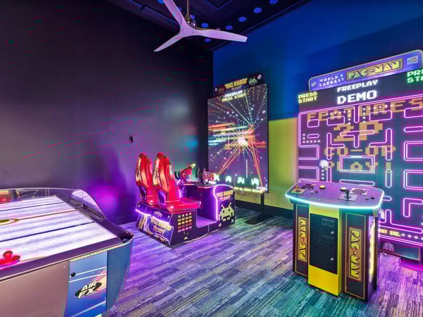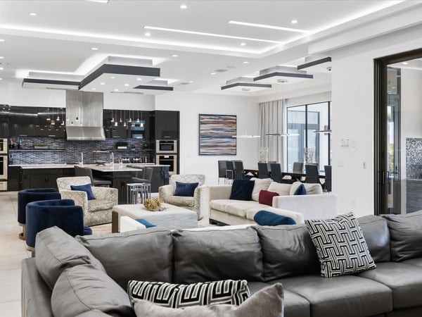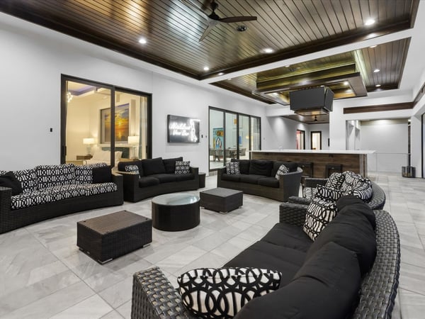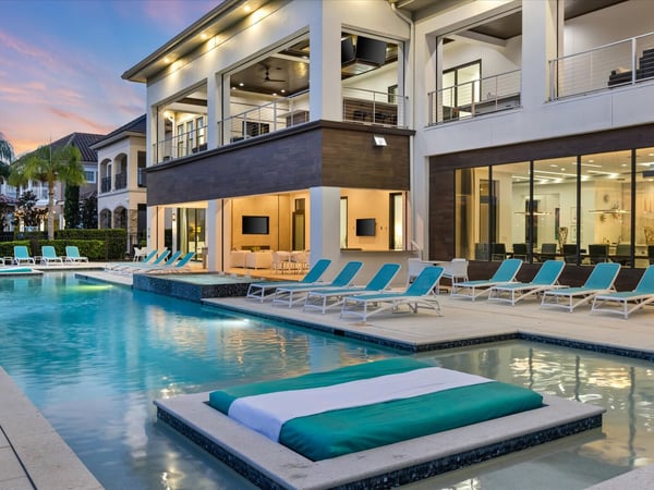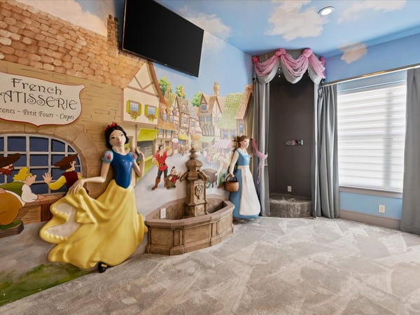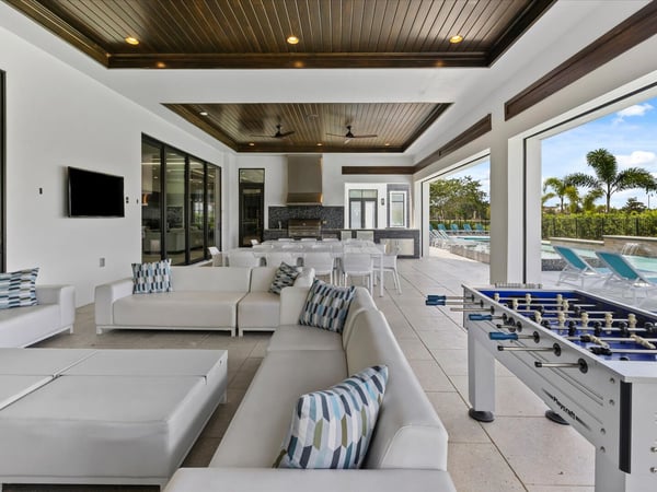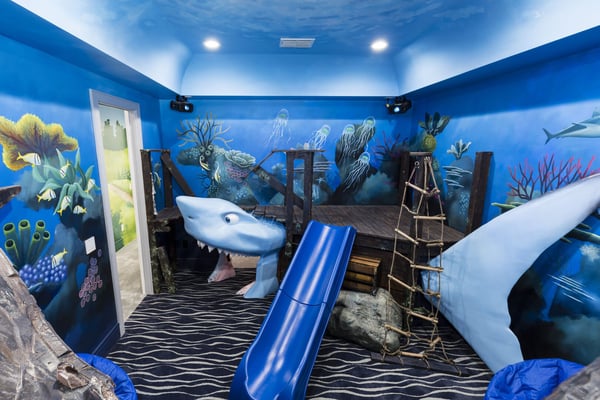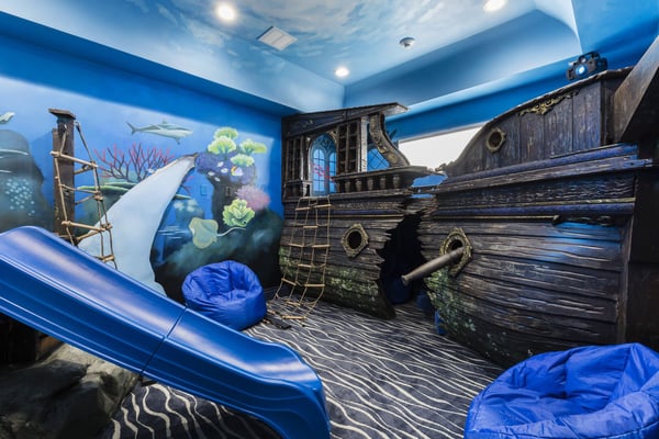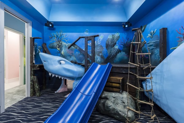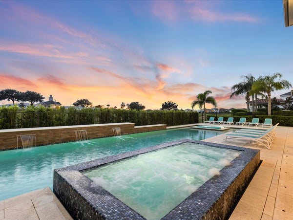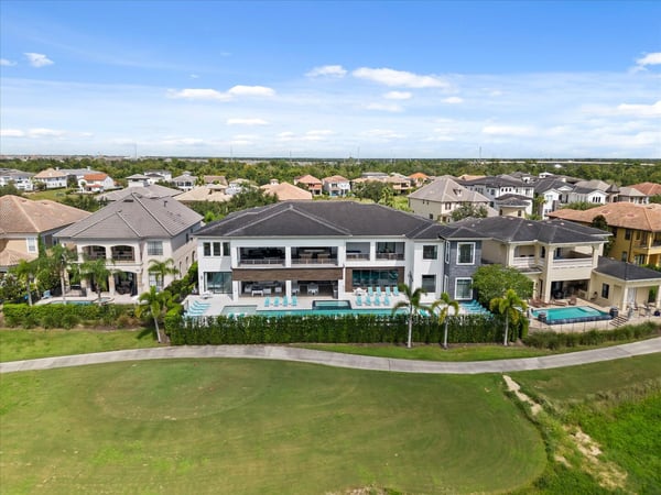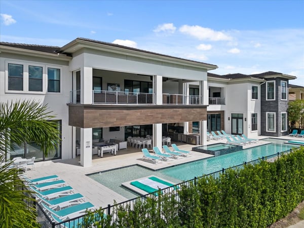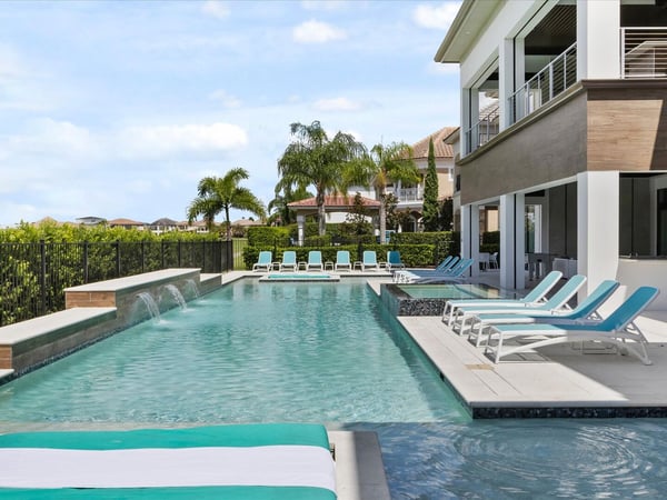 Your vacation will be truly unforgettable in this breathtaking custom sanctuary, perfectly positioned to overlook the stunning Jack Nicklaus golf course. Spanning over 13,000 square feet of exquisitely designed living space, this estate offers every conceivable luxury, ensuring an experience that will leave a lasting impression on both family and guests. The living room is a masterpiece of comfort and style, featuring a giant flat-screen TV, innovative lighting, and multiple seating areas furnished with plush couches, velvet bucket chairs, and a chaise lounge, all designed for ultimate relaxation. The adjoining spacious kitchen, open to the living area, is a chef’s dream, showcasing gorgeous blue tile, top-of-the-line stainless steel appliances, expansive granite counters, and a high-top dining bar. An adjacent formal dining table, seating 18, provides the perfect setting for elegant meals shared in good company. For the teens, this estate is a paradise. A mammoth home cinema, a secret arcade room, and a separate loft gathering area equipped with both Xbox One and PS4 game stations offer endless entertainment and excitement. Adults are equally spoiled, with the option to work out in the state-of-the-art gym or unwind in one of the three lavish bars. The fully-stocked game room, complete with pool and foosball tables, also features a unique four-TV video wall—an absolute dream for sports enthusiasts. After a day filled with adventures, retreating to the grand bedrooms will be a pleasure. Each room is luxuriously outfitted with premium mattresses, sumptuous bedding, and chic modern furnishings. The en suite baths are equally impressive, with the primary King Suite standing out for its separate, posh sitting area and a magnificent bathroom featuring double sinks and vanities, a large shower with a bench, and a stunning soaking tub as the centerpiece. The additional King, Queen, and Double suites are equally luxurious, drawing inspiration from the primary suite's opulence. Children will be enchanted by the themed bedrooms, where their imaginations can run wild. A Galactic-inspired room immerses them in the heart of a beloved movie franchise, complete with cool bunk beds. A Princess-themed room offers double bunks built into a castle, plus a closet brimming with costumes for immersive play. The underwater-themed room is a particular delight, featuring a climb through enormous shark’s teeth, a climbing rope descending from a sunken ship, and an indoor slide for endless fun. The outdoor area is as impressive as the interior. A vast patio and stunning pool area stretch across the entire width of the estate. The beautiful pool boasts a waterfall, shallow splash areas perfect for young children, a spacious spa seating 10, and two floating loungers where you can relax while soaking in the breathtaking views of the golf course. With over 2,500 square feet of covered outdoor living space, this property effortlessly blends indoor and outdoor living. From a full-scale Sports Bar on the upstairs balcony to a large gourmet summer kitchen and gathering area downstairs, this estate is the epitome of luxurious living. How could you not fall in love with this magnificent property? Every detail has been carefully considered to ensure that your stay is nothing short of extraordinary.