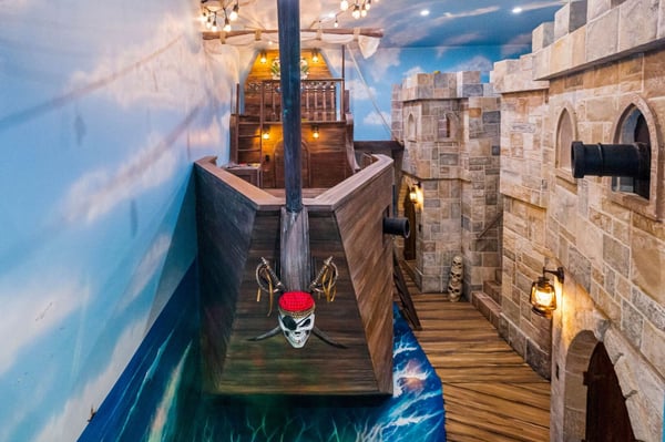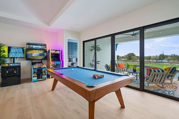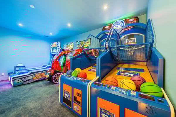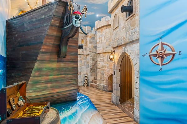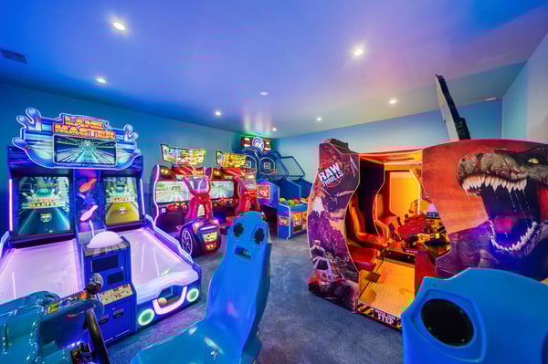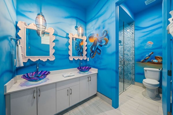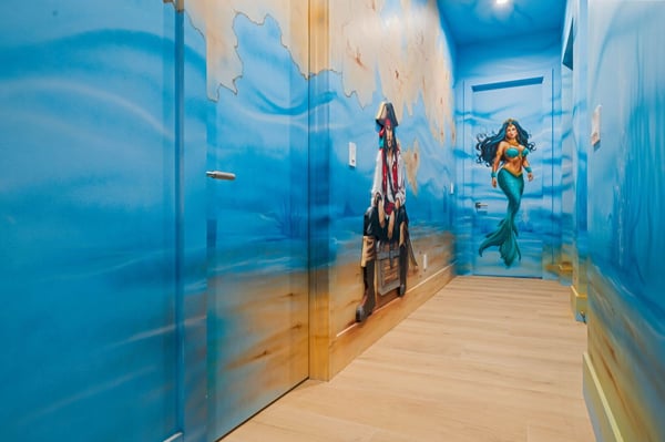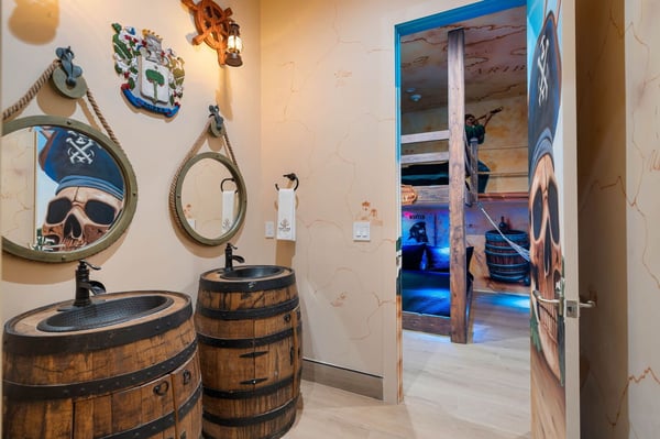 Discover the epitome of tropical luxury at Seaside Serenity Lodge, a stunning custom-built mansion designed for those who seek an unparalleled vacation experience. Located on the 16th hole of the prestigious Nicklaus signature golf course, this brand-new, meticulously crafted estate offers sweeping views of serene water features, providing the perfect blend of elegance, comfort, and sophistication. Every inch of this breathtaking property has been thoughtfully designed to cater to your every need, from the moment you step through the grand double-height entry. Expansive open living spaces are bathed in natural light, flowing seamlessly onto a large pool deck surrounded by lush tropical landscaping. Whether you're entertaining guests in the formal dining room, unwinding in the spacious lounge areas, or enjoying a private cocktail in the custom-designed loft, Seaside Serenity Lodge offers endless options for relaxation and recreation. The main floor features four beautifully appointed bedrooms, each with an en-suite bathroom, ensuring privacy and luxury for every guest. The primary suite, with its poolside views, is a true sanctuary, while the commercial-grade arcade room and fully equipped gym provide entertainment and relaxation for all ages. Additional amenities include a dedicated service kitchen, separate laundry facilities, and a powder bath. Upstairs, the expansive loft area serves as an entertainment hub, with a custom bar, comfortable seating, multiple TVs, a pool table, arcade games, and a spacious balcony overlooking the golf course. The upper level also includes three king suites, each with private balconies, as well as a state-of-the-art movie room featuring 12 reclining seats and a full complement of lounge chairs for the ultimate cinematic experience. For families, Seaside Serenity Lodge offers one of the most extraordinary themed kids’ areas in Reunion Resort. The enchanting Mermaid Room and adventurous Pirates' Quarters feature full-sized bunk beds, a secret fort, and a pirate ship with interactive play areas, foam pits, and game consoles, making it a place where imaginations run wild. Your little adventurers will delight in the treasure hunts, pirate costumes, and hidden treasures scattered throughout the property. Step outside and immerse yourself in the tropics with a spacious covered lanai offering comfortable seating, a large outdoor TV, al fresco dining, and a fully equipped summer kitchen. Whether you’re enjoying a cocktail at the tropical bar, cooling off under the misting system, or simply soaking up the sun by the pool, every moment here is designed to create lasting memories. As the sun sets, gather around the fire pit or enjoy a movie under the stars with a drop-down cinema screen. At Seaside Serenity Lodge, every detail has been carefully crafted to provide a luxury vacation experience like no other. Whether you seek adventure, relaxation, or a blend of both, this tropical oasis is your ultimate destination. Come live the dream—your unforgettable getaway awaits.