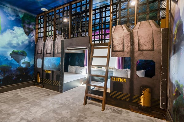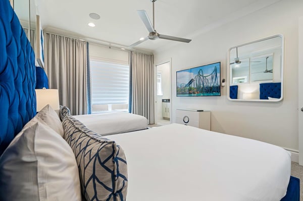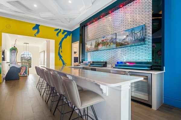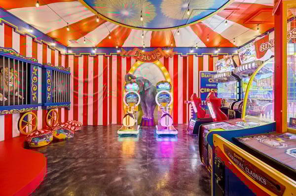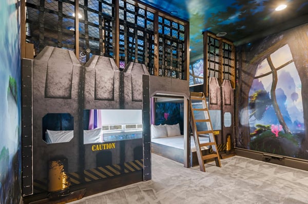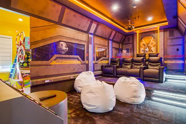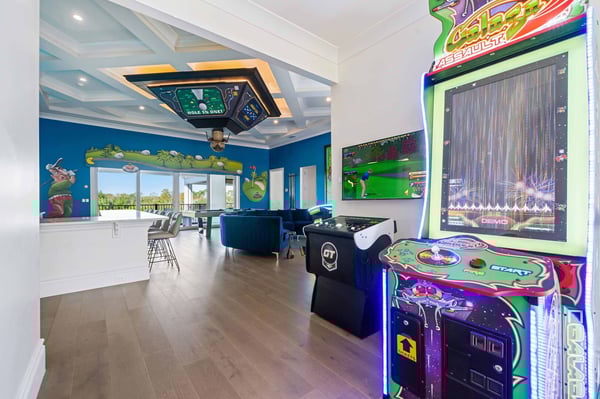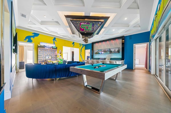 Welcome to Starlight Villa, an extraordinary 8-bedroom, 8-bathroom luxury estate spanning an impressive 7,142 square feet in the prestigious Bears Den community at Reunion Resort. This home combines modern elegance with exciting entertainment options, making it the ultimate retreat for families of all sizes. With its luxurious design, premium furnishings, and thoughtfully crafted spaces, Starlight Villa is more than a vacation home—it’s an experience. From the moment you step inside, you’ll be captivated by the home’s contemporary design and spacious layout. The living areas are adorned with sleek modern furniture, high ceilings, and large windows that fill the space with natural light. The open-concept floor plan seamlessly connects the living, dining, and kitchen areas, creating an ideal environment for relaxation and togetherness. Whether lounging on plush sofas or gathering around the dining table for a meal, every corner of this home is designed for comfort and style. The kitchen is a chef’s dream, equipped with high-end appliances, ample counter space, and elegant finishes. It’s perfect for preparing everything from quick breakfasts to gourmet dinners. Adjacent to the kitchen, the dining area offers seating for large groups, making it easy to share meals and create lasting memories. Each of the eight bedrooms is a private sanctuary, boasting spacious layouts, premium bedding, and luxurious en-suite bathrooms. Adults will appreciate the sophisticated design of the primary suites, while younger guests will be delighted by the themed children’s bedroom, a whimsical space designed to spark imagination and fun. Entertainment is at the heart of Starlight Villa. The home features a private theater where you can enjoy movie nights with state-of-the-art sound and projection. The circus-themed arcade offers hours of fun for guests of all ages, with vibrant decor and games that bring the excitement of a carnival right into your home. Step outside to your private oasis—a large pool and patio area that promises relaxation and recreation. Lounge in the Florida sunshine, cool off with a swim, or enjoy a meal al fresco under the covered patio. The spacious outdoor area provides plenty of seating and room to gather, making it perfect for hosting or simply enjoying quality time with loved ones. Located in Bears Den at Reunion Resort, this home grants access to an array of world-class amenities. Golf enthusiasts will love the nearby Signature courses designed by Nicklaus, Palmer, and Watson. The resort’s water park, tennis courts, and fitness centers ensure that there’s something for everyone to enjoy. Dining options abound, from casual bites to elegant meals, and Reunion’s exclusive theme park shuttle service makes exploring Central Florida’s top attractions effortless. Starlight Villa is a luxurious escape that offers the perfect blend of comfort, style, and entertainment. Whether you’re swimming in the private pool, enjoying the theater, or spending time in the arcade, every moment in this home is designed to delight. Book your stay today and create unforgettable memories in one of Reunion Resort’s most exceptional properties.