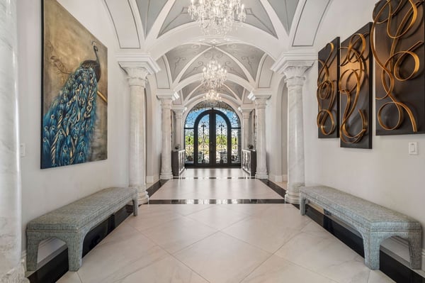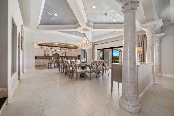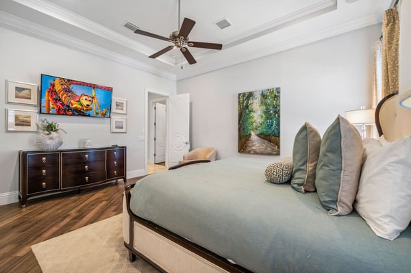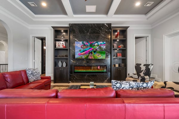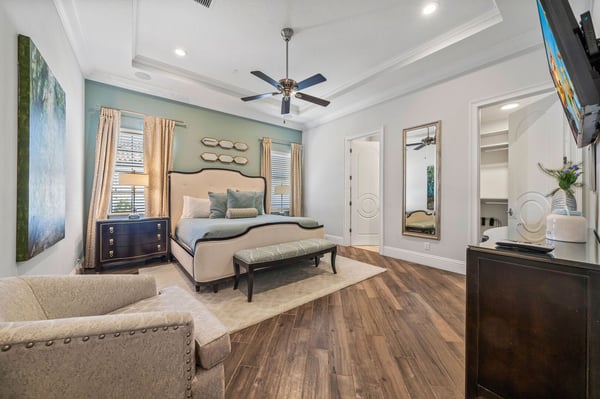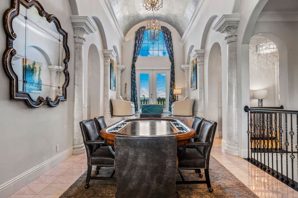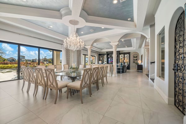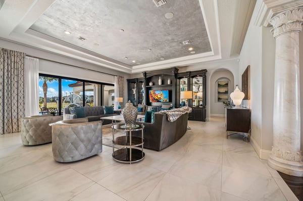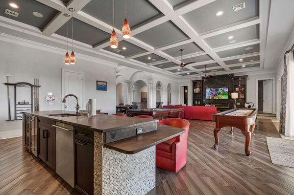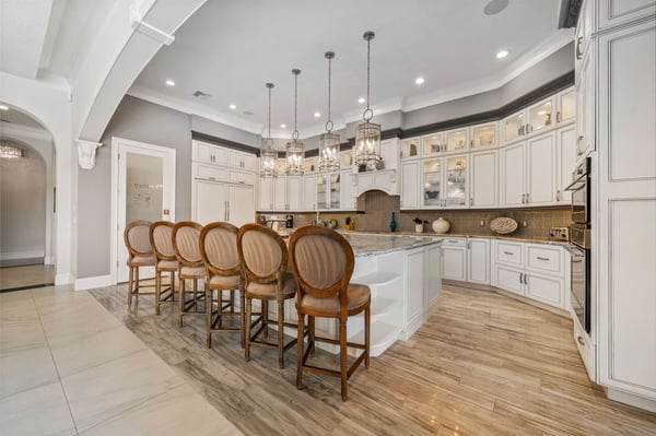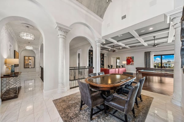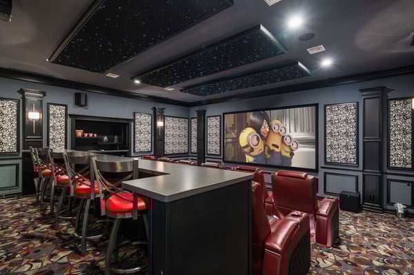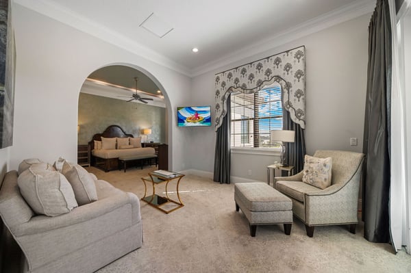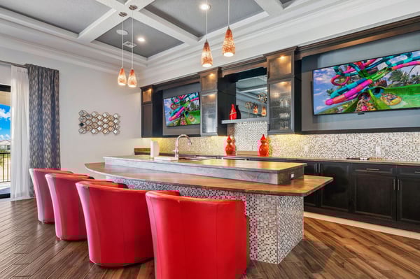 Welcome to Horizon Bay, an extraordinary 11,448 sq. ft. estate that embodies timeless elegance and modern luxury. This stunning 10-bedroom, 10-bathroom retreat sleeps up to 26 guests, making it an ideal destination for large family gatherings, group vacations, or special celebrations. From its striking Spanish tile roofing to its grand interiors featuring upscale traditional furnishings, Palacio del Sol is a masterpiece of design and comfort. Step inside to discover spacious rooms adorned with intricate trim and molding, creating a refined ambiance reminiscent of a regal castle. The expansive living areas are thoughtfully designed to balance elegance with functionality, providing the perfect spaces to relax, entertain, and connect with loved ones. The large master bedroom is a private sanctuary, boasting luxurious furnishings, ample space, and an en-suite bathroom designed for indulgence, complete with high-end finishes and spa-like features. Entertainment takes center stage at Horizon Bay. The home’s game loft is a vibrant space where guests of all ages can gather for friendly competition and fun. The dedicated movie theater offers a cinematic experience, complete with plush seating and state-of-the-art audiovisual equipment, perfect for movie nights or binge-watching your favorite shows. These entertainment options ensure that every moment at Horizon Bay is filled with enjoyment and relaxation. Step outside to the estate’s breathtaking outdoor area, a true oasis designed to celebrate Florida’s beautiful weather. The luxurious back patio features a fully equipped summer kitchen, ideal for al fresco dining or poolside barbecues. The sprawling pool invites you to take a refreshing dip, while the hot tub offers a soothing retreat after a day of adventure. Younger guests will delight in the splash pad, while the lazy river provides a tranquil experience for guests of all ages to unwind and float their cares away. The attention to detail extends to every corner of Horizon Bay, from the thoughtfully designed bedrooms to the inviting common spaces. Each bedroom is uniquely decorated with upscale traditional furniture, offering a serene retreat for rest and rejuvenation. High-quality linens, ample storage, and tasteful decor enhance the comfort of every guest, ensuring a restful stay. Located in the prestigious Eagle Estates community, Horizon Bay offers easy access to nearby attractions and exclusive resort-style amenities. Whether you’re lounging by the pool, enjoying a movie in the theater, or sharing meals prepared in the gourmet kitchen, this home is a destination in itself, designed to create unforgettable memories. Horizon Bay is more than just a vacation rental—it’s a statement of elegance, luxury, and timeless charm. Book your stay today and experience the ultimate in comfort, style, and relaxation at this one-of-a-kind estate.