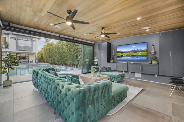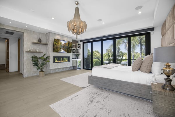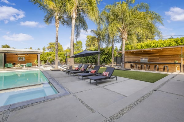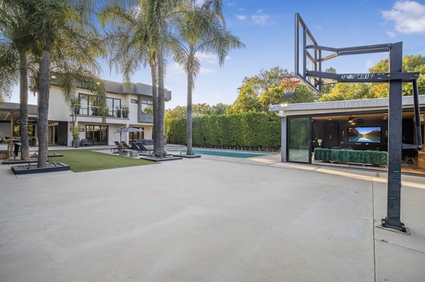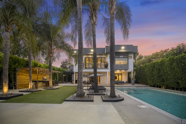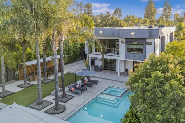 Unwind at this modern estate designed for total relaxation and entertainment in the heart of Encino’s prestigious Amestoy Estates. This stunning 8-bedroom, 7.5-bathroom smart estate is designed for grand entertaining and intimate relaxation alike, offering seamless indoor-outdoor living and top-tier finishes throughout. Step into elegance with a dramatic entryway, formal living and dining spaces, and a show-stopping chef’s kitchen featuring a massive island and premium appliances. The open-concept family room is lined with glass walls that lead to a private resort-style backyard—complete with a sparkling pool, spa, sauna, cabana, outdoor shower, and full BBQ station with a wet bar. The estate offers two en-suite bedrooms and a private gym on the main floor, with five additional en-suites upstairs, including a lavish primary suite with a private terrace, dual walk-in closets, and a spa-inspired bathroom featuring a soaking tub and double rainfall shower. Enjoy Control4 smart home automation, solar power, premium security, and an unmatched level of luxury and comfort—perfect for large groups, families, corporate retreats, or anyone looking to experience Encino at its finest. HSR25-000160