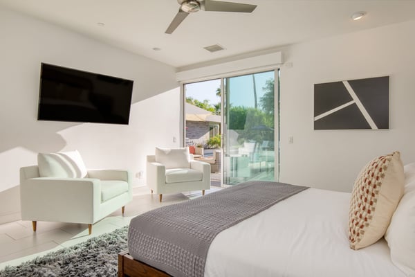 **This is a 2-home buyout. Each home is available to be booked individually, and we also offer similar buyouts in the same location.** Welcome to the Palms Retreat Buyout - Villa 5 and 6 - Two stunning villas in the heart of Coachella Valley. Enjoy 11 comfortable bedrooms and a sleeping capacity of 22 guests. Treat your guests to an unforgettable experience at our modern, group-friendly Villas. Interested in hosting a work or wellness retreat? Maybe a brand activation? Your team works hard, so let us work harder to make this unforgettable. Bond over a mixology class led by a private bartender, a luxury catered happy hour and dinner, and enjoy an outdoor seating area curated for your group. Kick back, relax, and let us plan your getaway. Please note that we enforce City regulations including occupancy and noise restrictions. If you have any questions about these rules, or are considering hosting an event, please let our team know in advance so that we can ensure that your reservation is compliant and runs smoothly! Located 100 miles east of Los Angeles, Coachella Valley is an oasis for those looking for an escape from the daily grind. Surrounded by picturesque vistas and mountains–as well as an abundance of golf courses, spas, and hiking trails–this desert destination is a must-visit. It's also the location for the nation's most famous music event, the Coachella Music & Arts Festival. No matter what time of year, there's always something exciting going on. Permits: 260-332, 6 Bedrooms and 260-324, 5 Bedrooms.