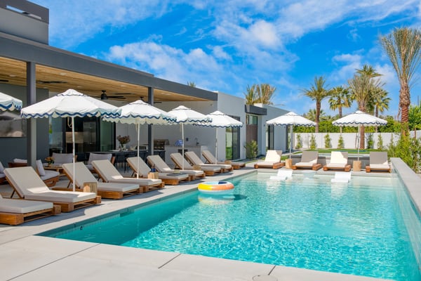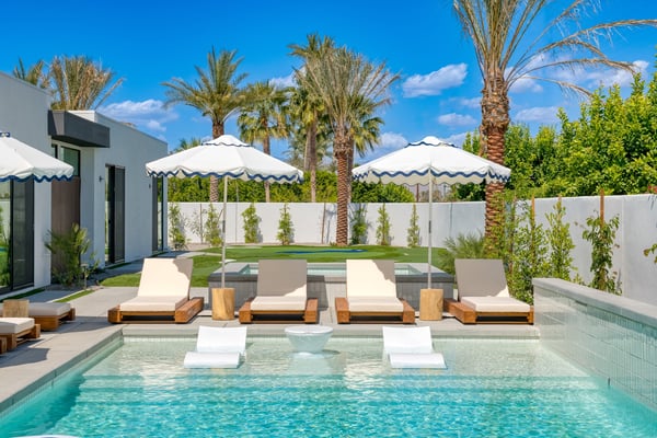 • Please be aware that during festivals like Coachella, although the Villas are within walking distance of the polo grounds, road closures and specific access points can extend the walking distance to the festival entrance to approximately 1.4 miles. While some guests choose to walk and walking is possible, we strongly recommend purchasing golf cart services for easier access. • This home allows pets for a fee. Any undisclosed pets brought in without approval will result in a $500 fine per pet. Please note that the backyard gates are wide enough for a small dog to get through, so we recommend supervising pets when outdoors. • Pool heat is available at this home at an extra cost and needs to be requested at least 48 hours before your stay. Spa Heat is complimentary for guests. • Pool heat is not available between May 1st and October 1st. • Our desert pools are heated to a maximum temperature of 86 degrees. Please note that we do not exceed this temperature for pool heating. • 2 twin rollaway beds with pillows and bedding can be provided upon request and are included as part of your nightly rate. • The Murphy bed available in our Media room can be prepared ahead of your arrival upon request. If you need assistance during your stay, please contact the team. Please do not attempt to adjust the bed on your own. • During the summer months, desert temperatures are extremely high, which may cause the pool temperature to rise as well. Unfortunately, there is nothing we can do to control this. • Each garage accommodates 3 cars. Each driveway accommodates 3 compact cars. • You must be at least 21 years old to book this property. • This is a smoke-free home. Violation of the no-smoking policy will result in a $500 fee for additional cleaning and other related costs, in addition to the Guest being responsible for any damages attributable to smoking beyond said fee. • Please be considerate of your neighbors and mindful of noise levels. Noise violations may result in fines. Please also note we do not provide speakers or sound systems. • The rates for this property are dynamic and are constantly changing. The price listed above is only a starting rate and does not necessarily reflect the price for your travel dates. Please contact a Villa Specialist for exact pricing details.