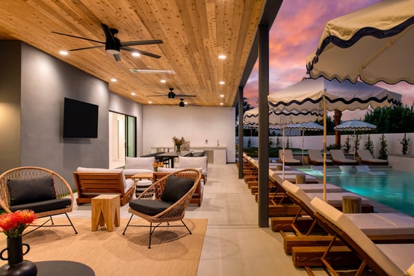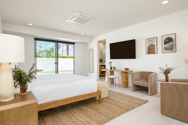 *This is a 2-home buyout. Each home is available to be booked individually, and we also offer similar buyouts in the same location.* Welcome to the Harmony Mesa Buyout - Villa 12 and 13 - Two stunning villas in the heart of Coachella Valley. Enjoy 12 comfortable bedrooms and a sleeping capacity of 24 guests. Treat your guests to an unforgettable experience at our modern, group-friendly Harmony Mesa. Interested in hosting a work or wellness retreat? Maybe a brand activation? Your team works hard, so let us work harder to make this unforgettable. Bond over a mixology class led by a private bartender, a luxury catered happy hour and dinner, and enjoy an outdoor seating area curated for your group. Kick back, relax, and let us plan your getaway. Please note that we enforce City regulations including occupancy and noise restrictions. If you have any questions about these rules, or are considering hosting an event, please let our team know in advance so that we can ensure that your reservation is compliant and runs smoothly! Permit numbers: 260-464, 6 BDR , 260-466, 6 BDR
